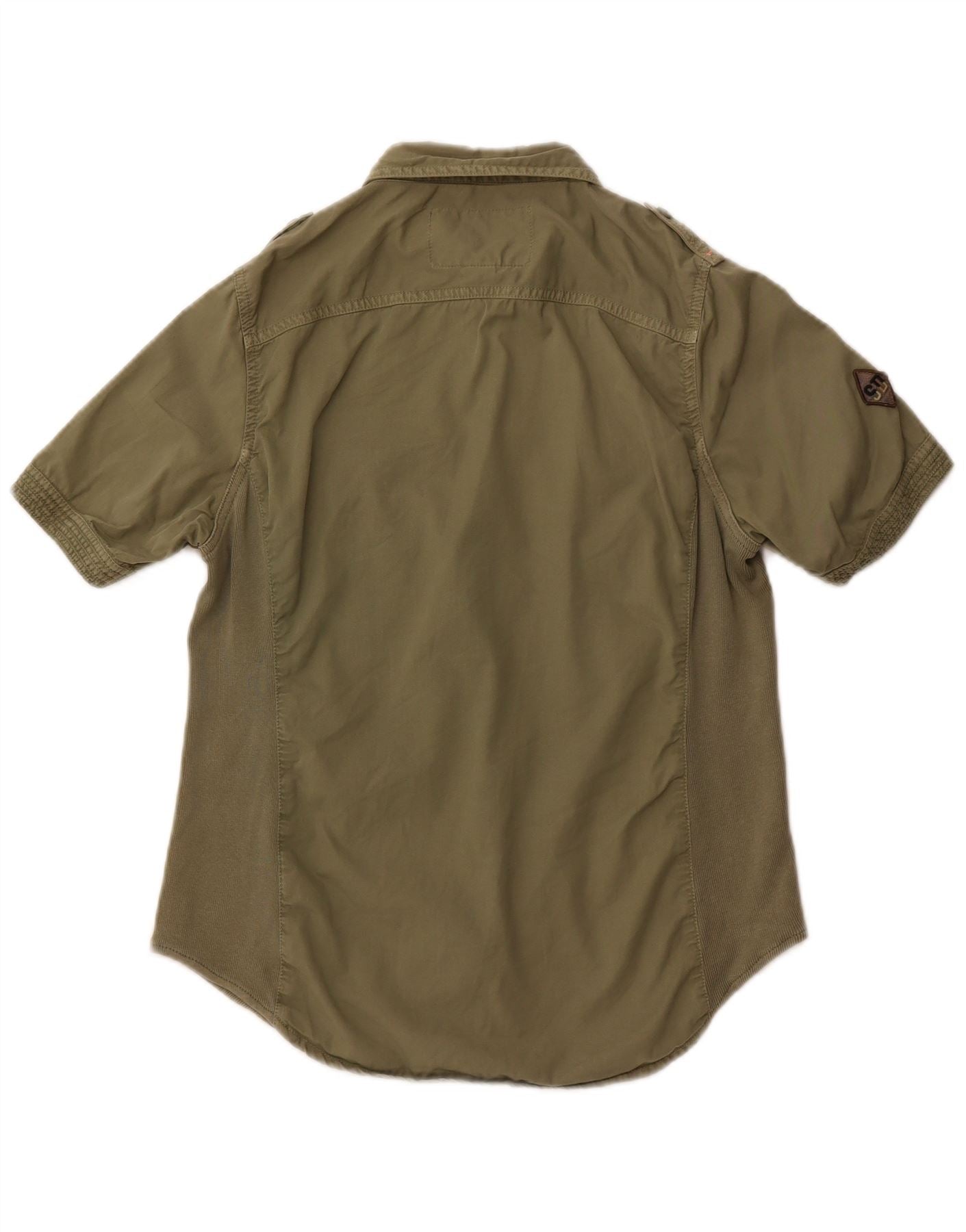 SUPERDRY Kurzarm-Militärhemd für Damen, UK 14, Größe L, Khaki, Baumwolle