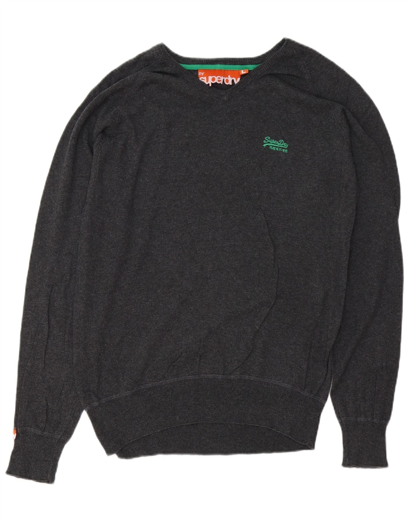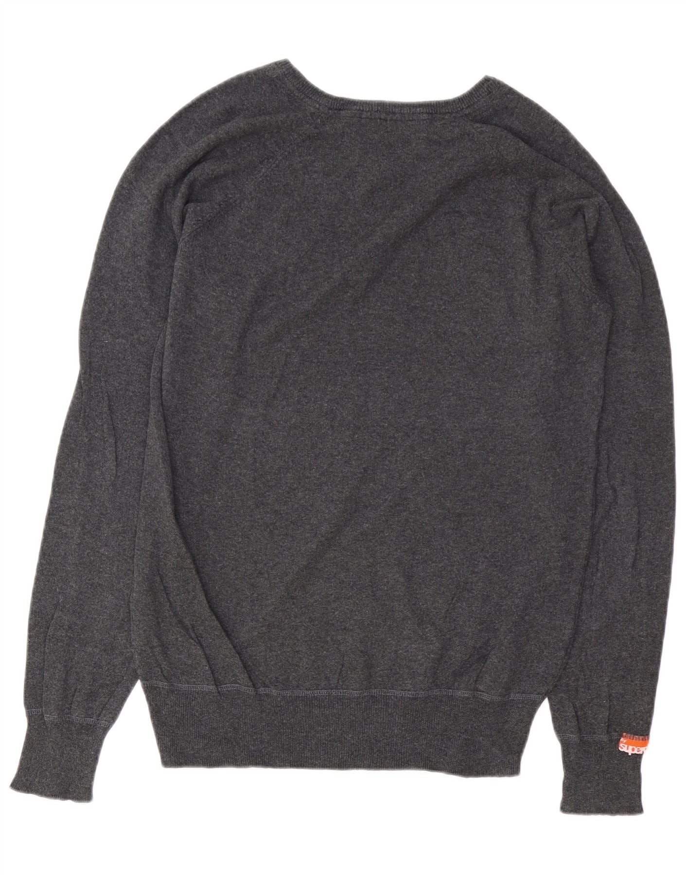 SUPERDRY Damen-Pullover mit V-Ausschnitt, UK-Größe 44, Größe L, Grau, Baumwolle