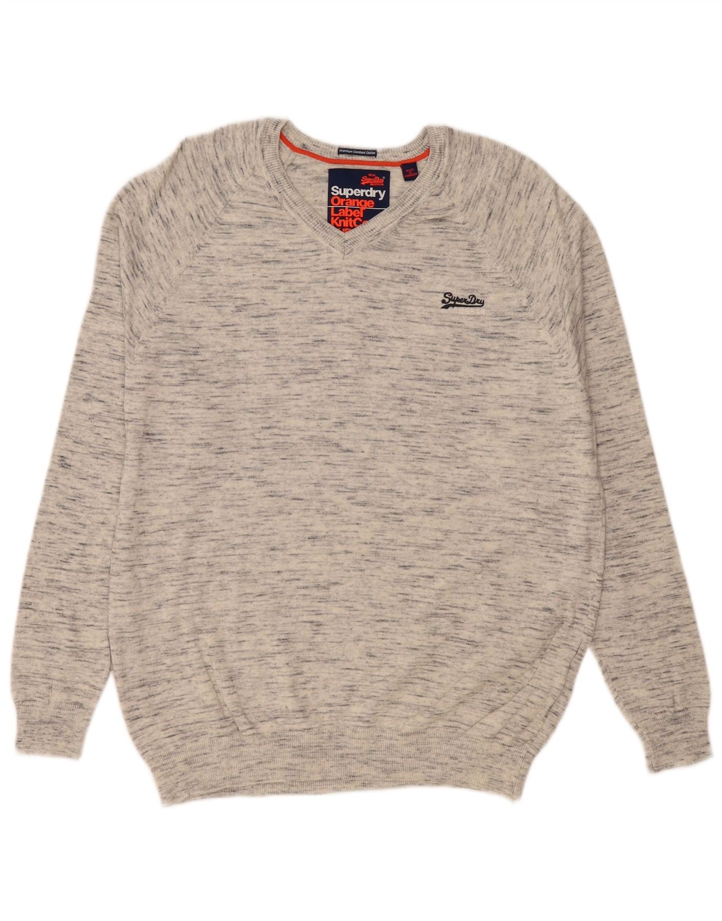 SUPERDRY Damen-Pullover mit V-Ausschnitt, Gr. 18, XL, grau gefleckte Baumwolle