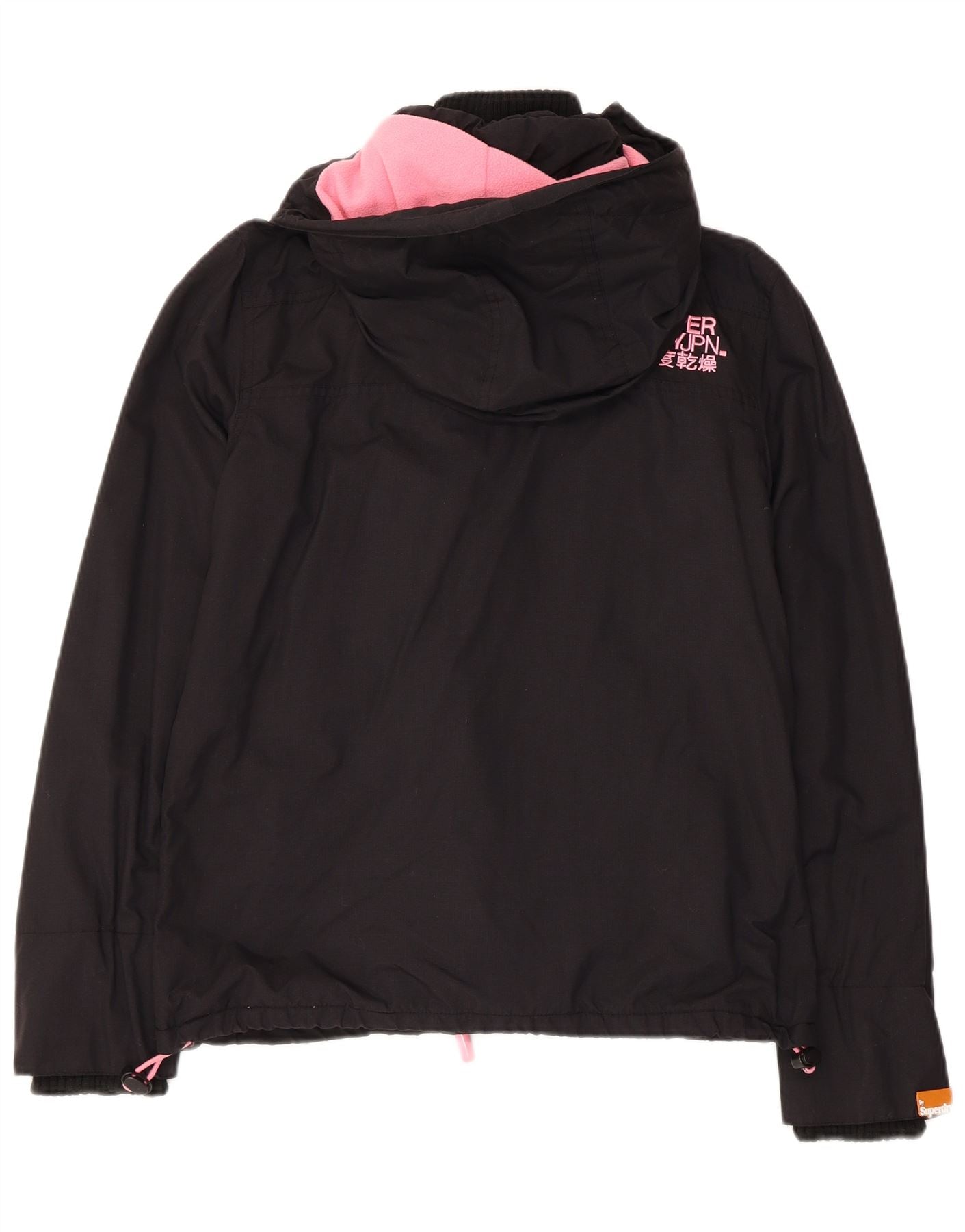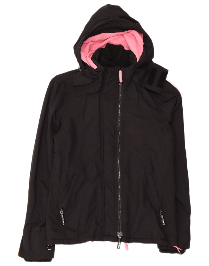 SUPERDRY Womens Windcheater Hooded Windbreaker Jacket UK 12 Medium Black