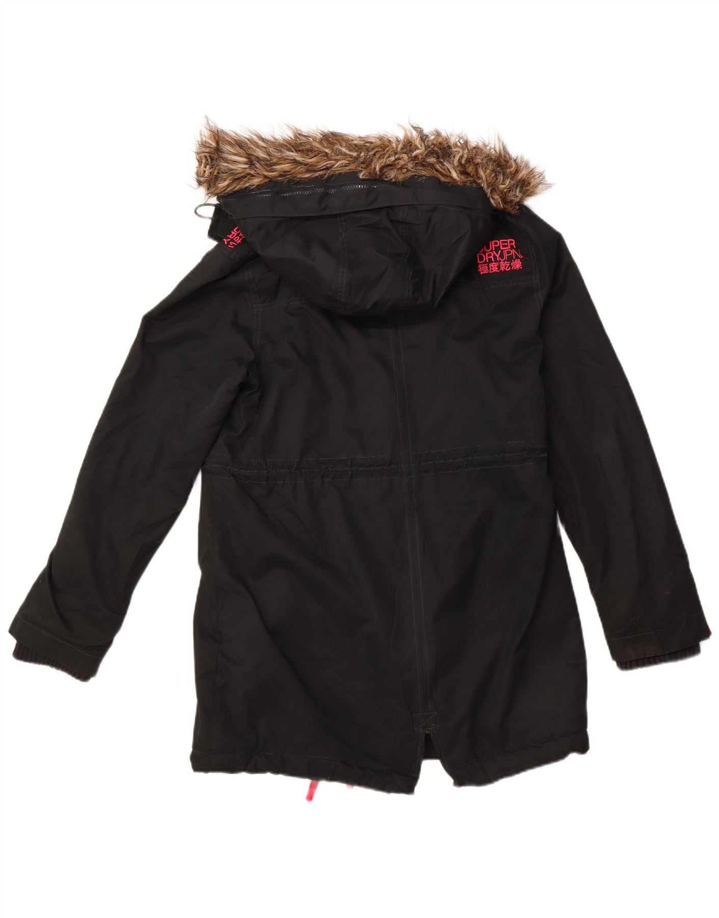 SUPERDRY Damen Windparka Graphic Hooded Parka Jacke UK 14 Large Schwarz