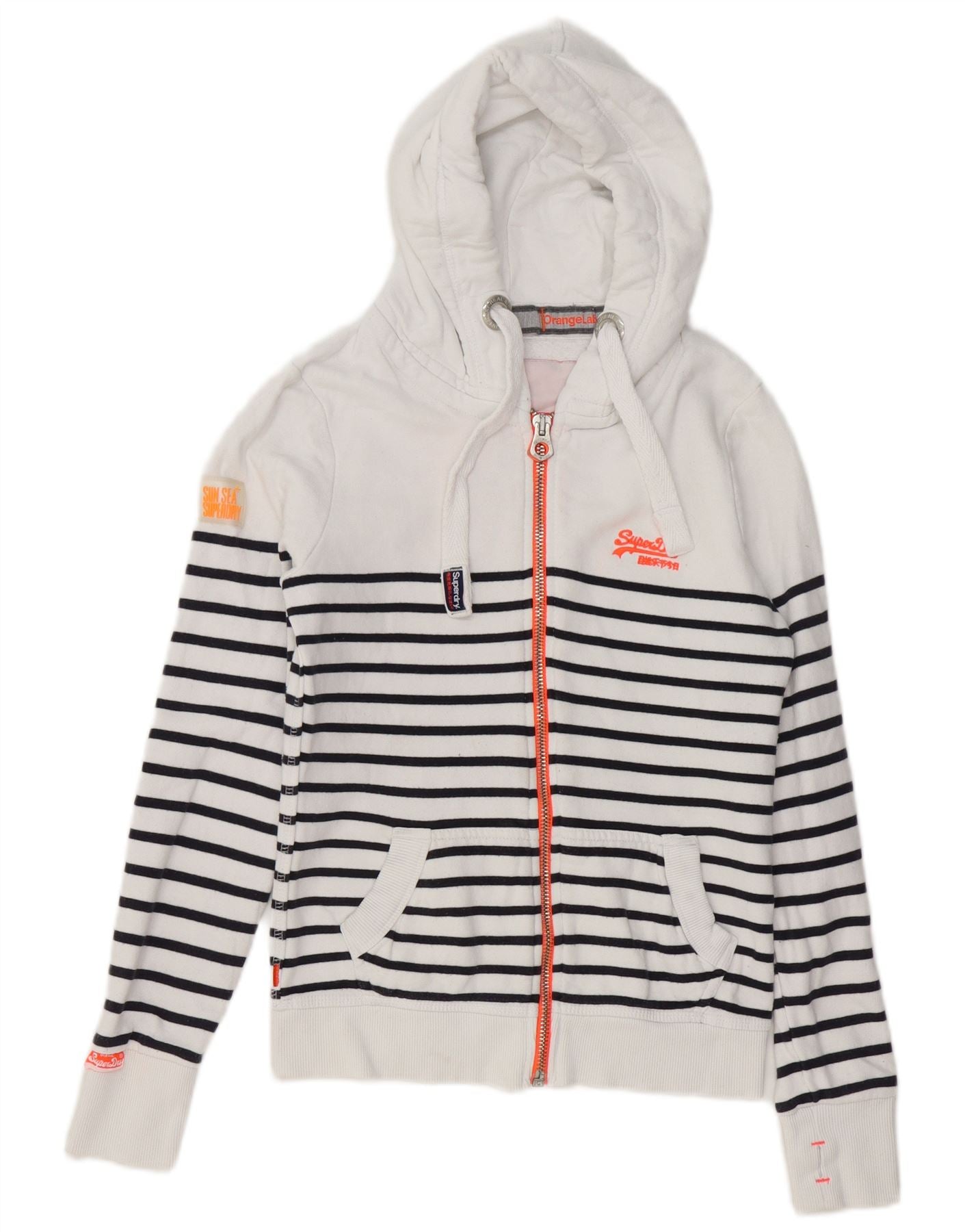 SUPERDRY Damen-Kapuzenpullover mit Reißverschluss, UK 6, XS, weiß gestreift, Baumwolle