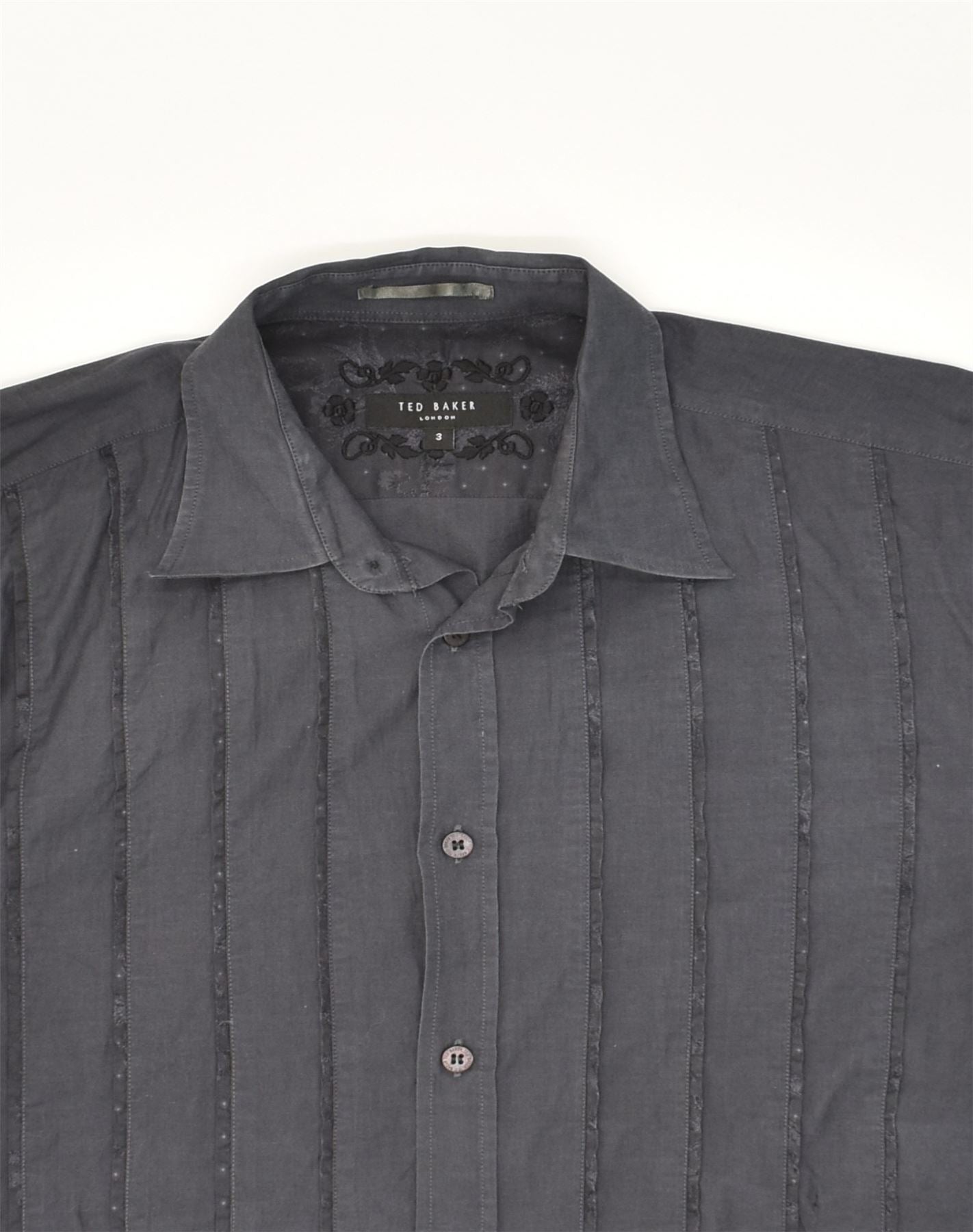 TED BAKER formelles Herrenhemd, Größe 3, mittelgrau, gestreift, Baumwolle