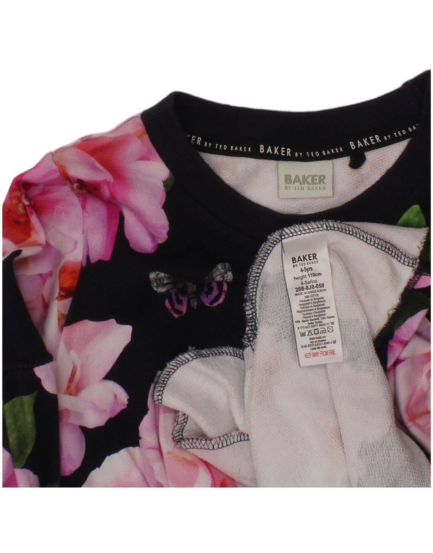 TED BAKER Grafisches A-Linien-Kleid für Mädchen, 4–5 Jahre, Marineblau mit Blumenmuster