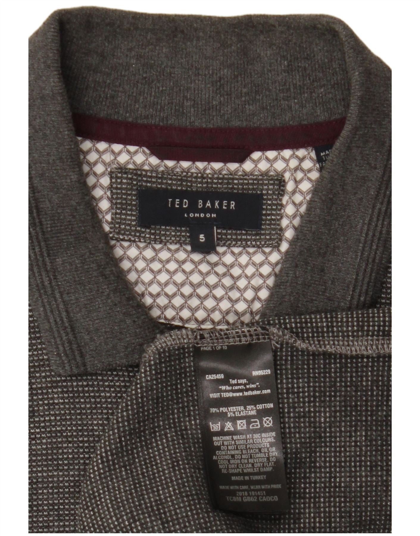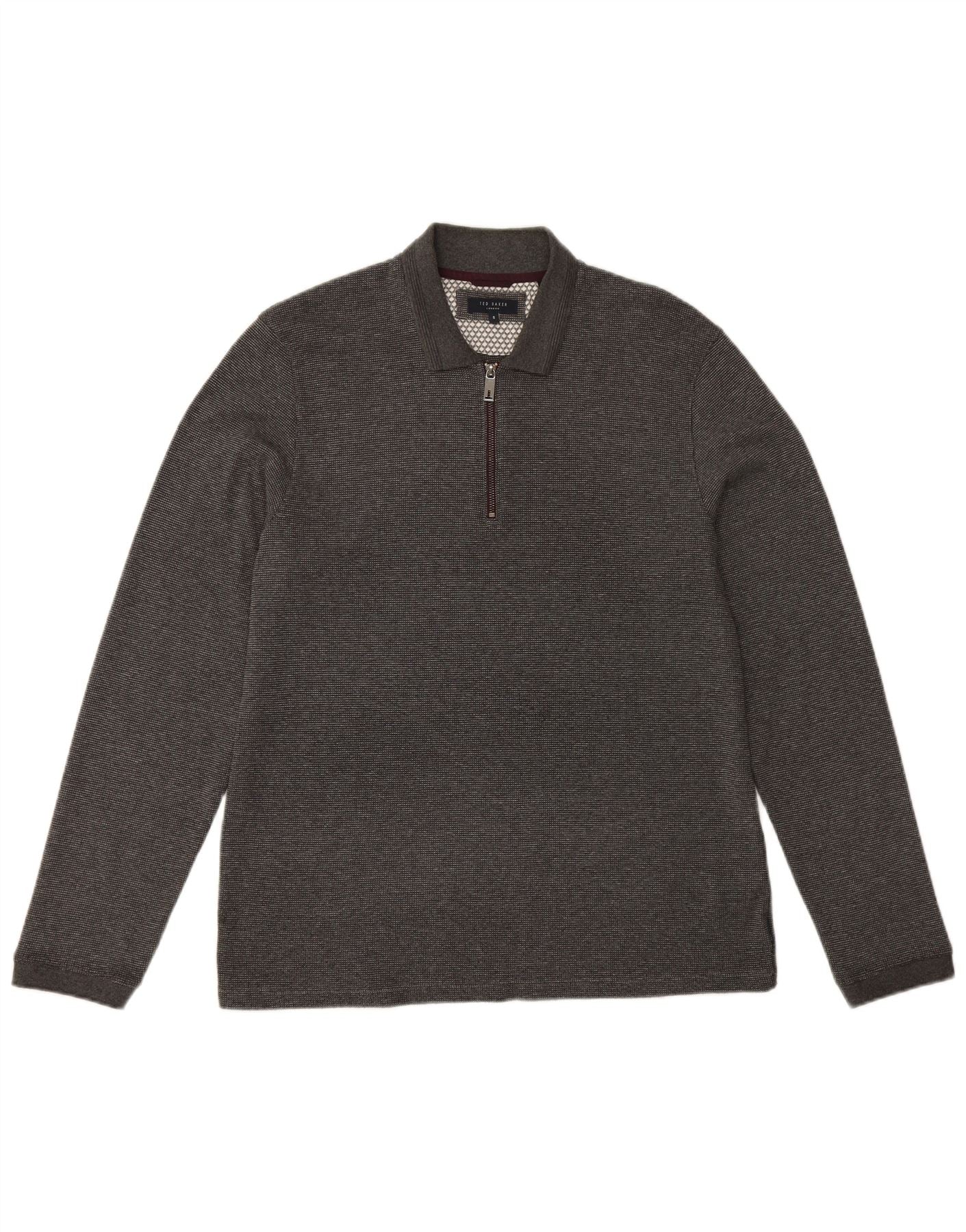 TED BAKER Herren London Langarm-Poloshirt, Größe 5 XL, graue Baumwolle