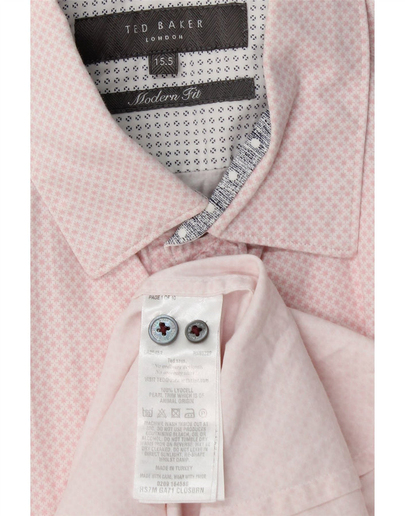 TED BAKER Mens Modern Fit Shirt Size 15 5 Medium Pink Spotted Lyocell