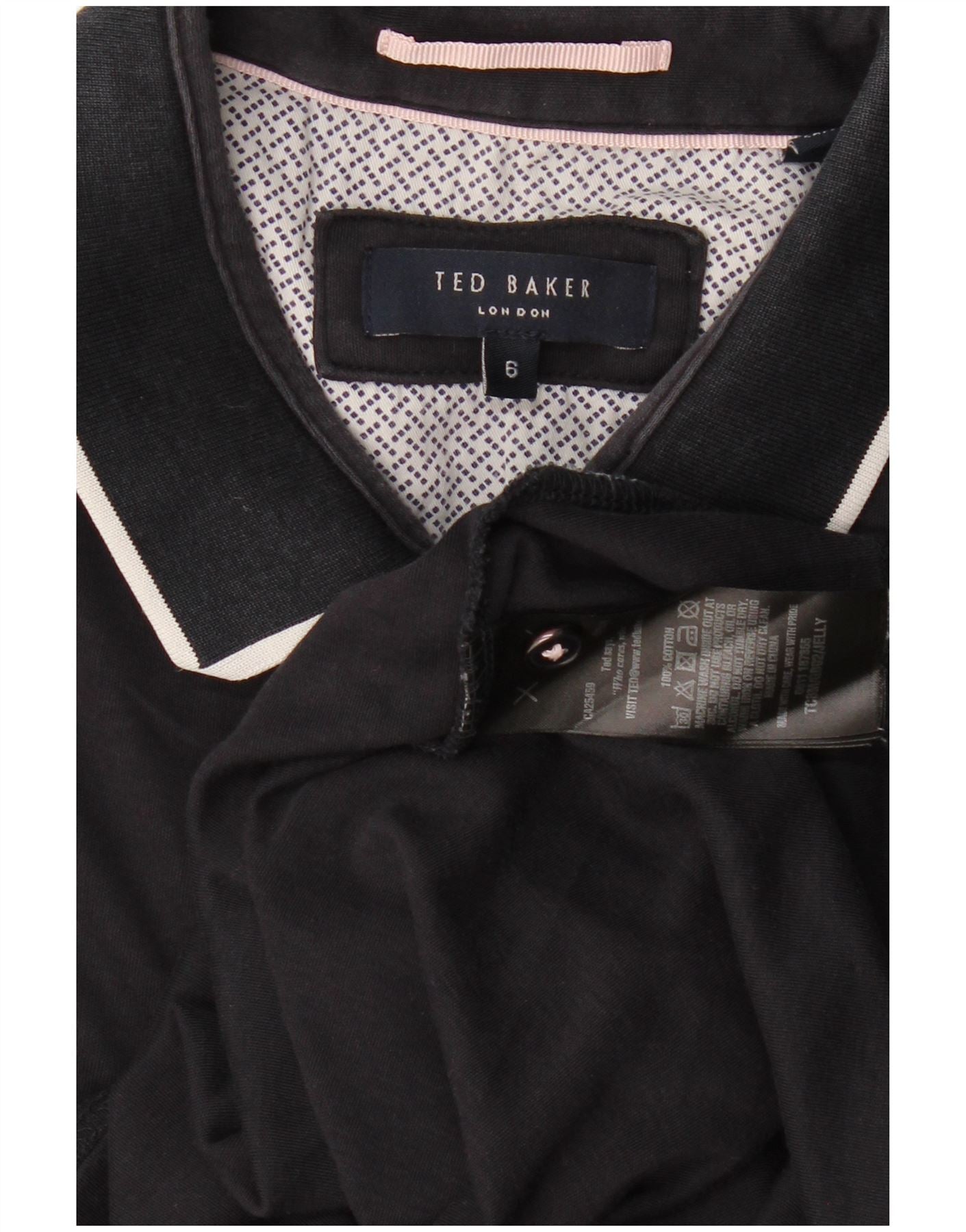 Ted Baker Herren-Poloshirt, Größe 6 2XL, schwarze Baumwolle