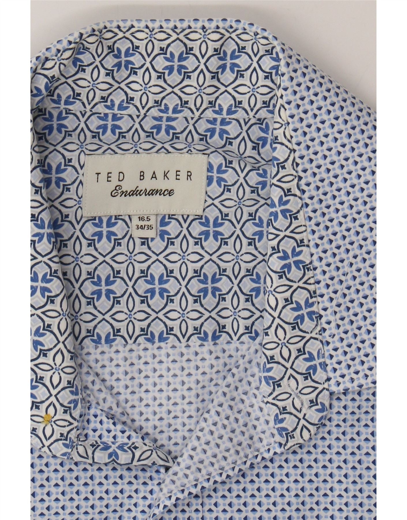 TED BAKER Mens Shirt Size 16.5 Large Blue Geometric Cotton
