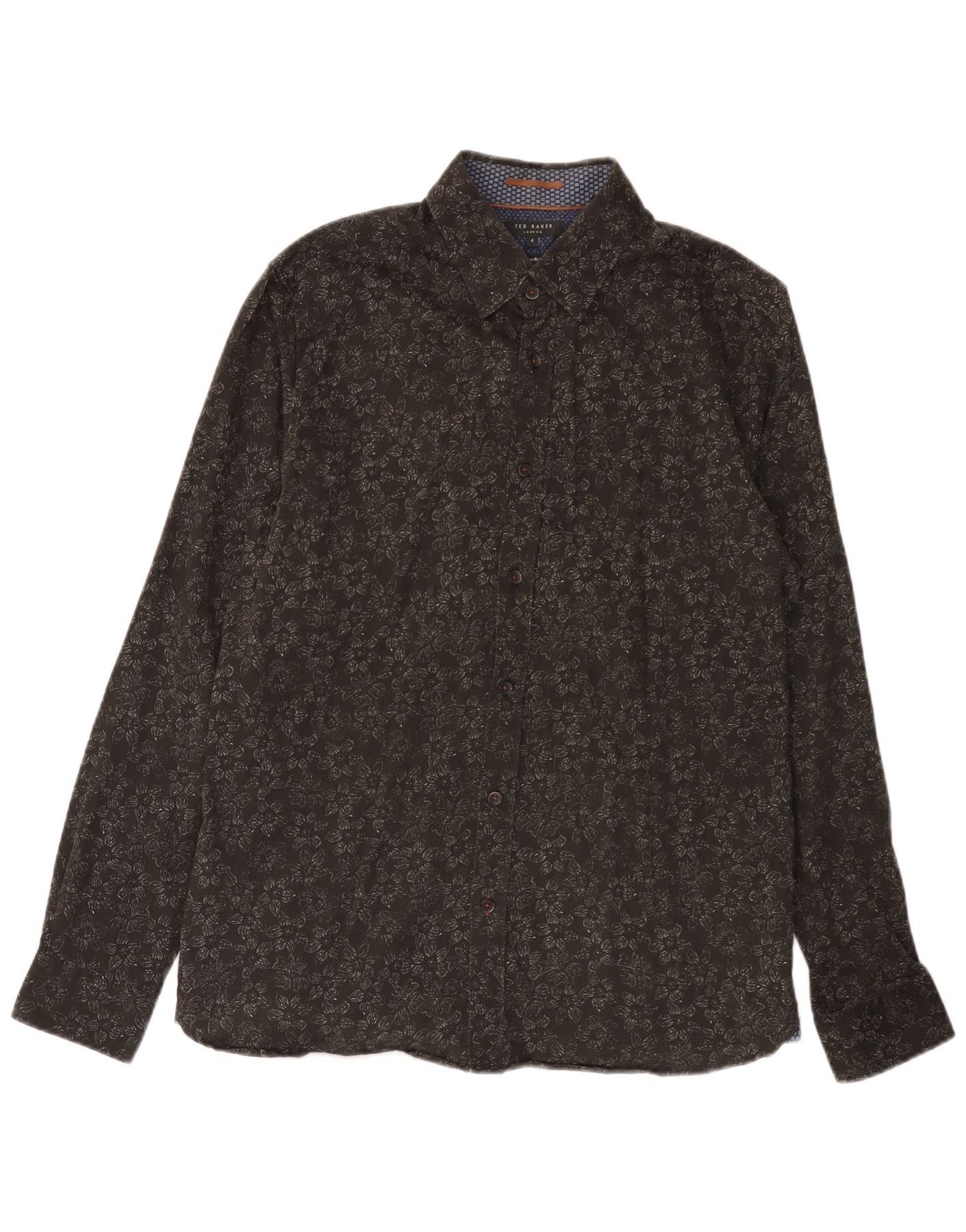 TED BAKER Herrenhemd, Größe 4, groß, schwarze Baumwolle mit Blumenmuster