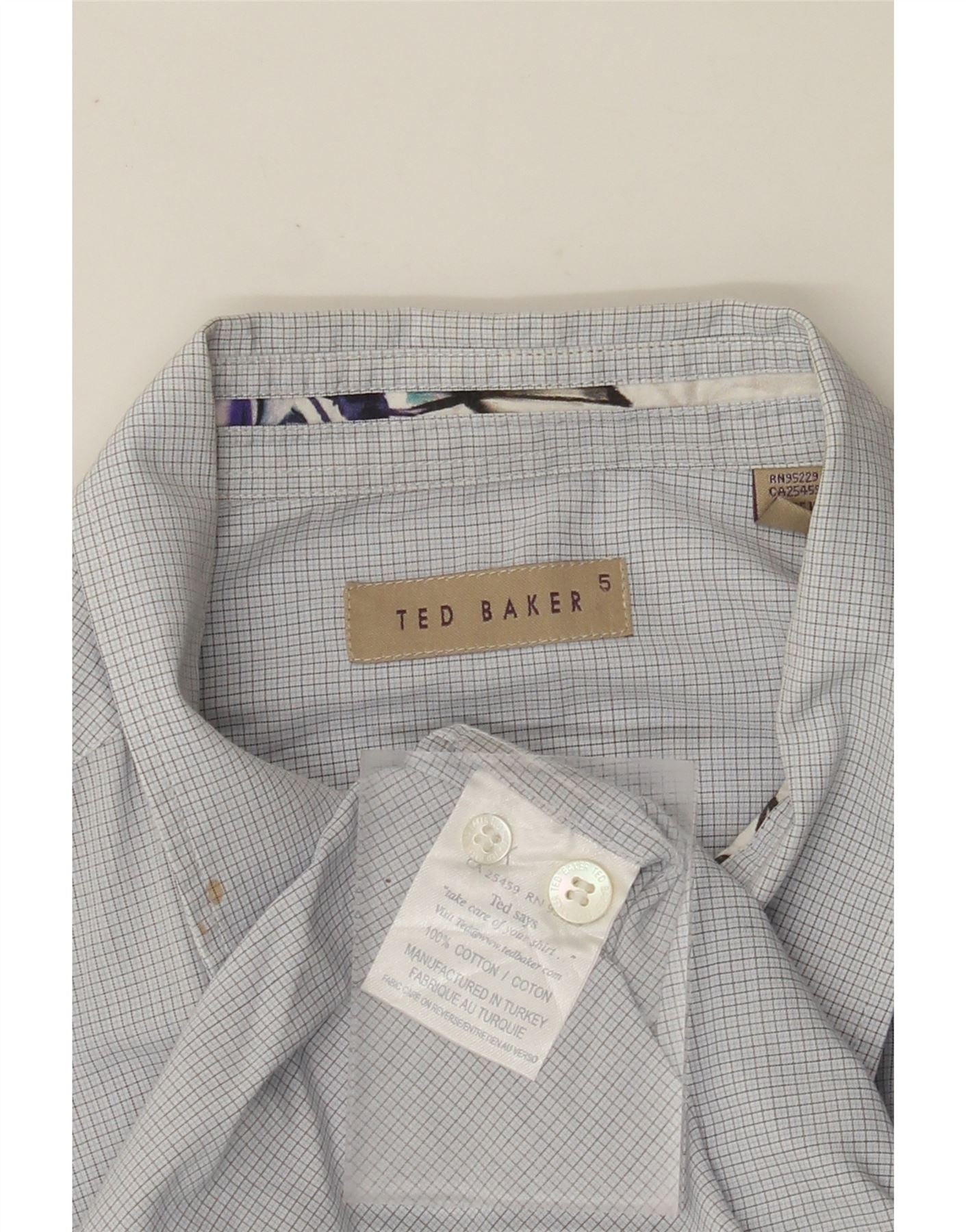 TED BAKER Herrenhemd Größe 5 XL, blaue Gingham-Baumwolle