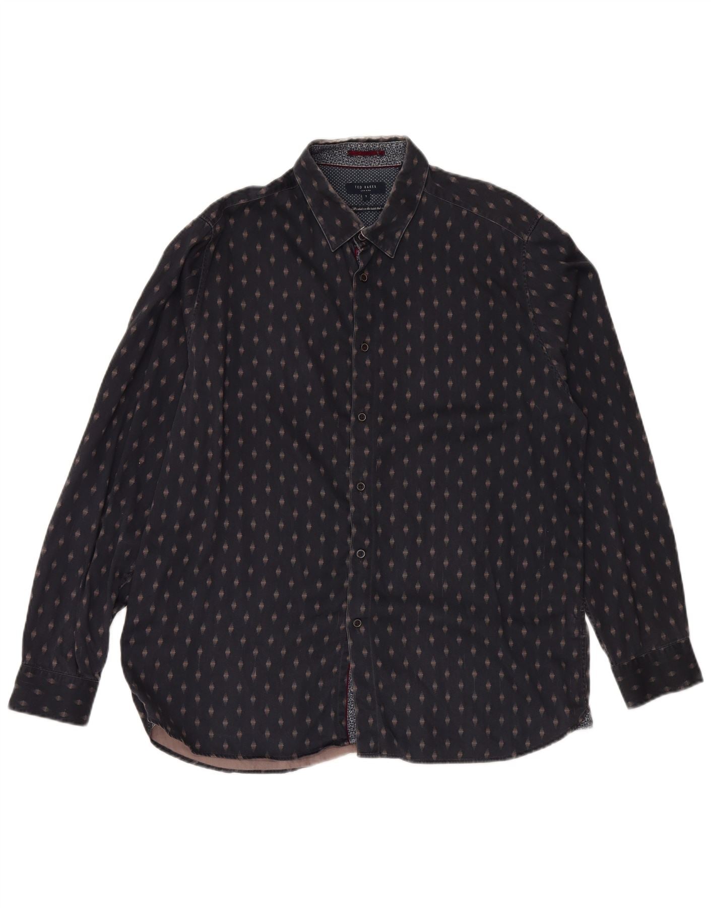TED BAKER Herrenhemd Größe 7 3XL Marineblaue geometrische Baumwolle