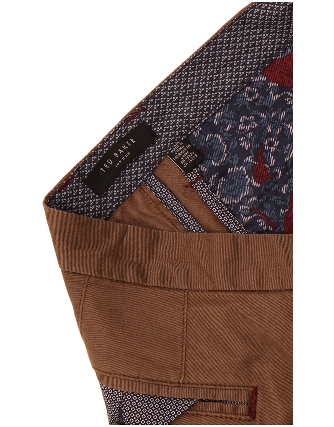 - KI-Beschreibung: Diese Herren-Chinohosen von Ted Baker sind aus einem glatten braunen Webstoff gefertigt. Sie verfügen über ein klassisches gerades Bein und eine normale Passform für Komfort. Der Knopfverschluss sorgt für eine sichere Taille. Für den täglichen Gebrauch sind praktische Taschen enthalten. Das Design ist klar und ohne Muster und bietet ein vielseitiges Styling. Dieser klassische Stil sorgt für einen eleganten und dennoch entspannten Look.