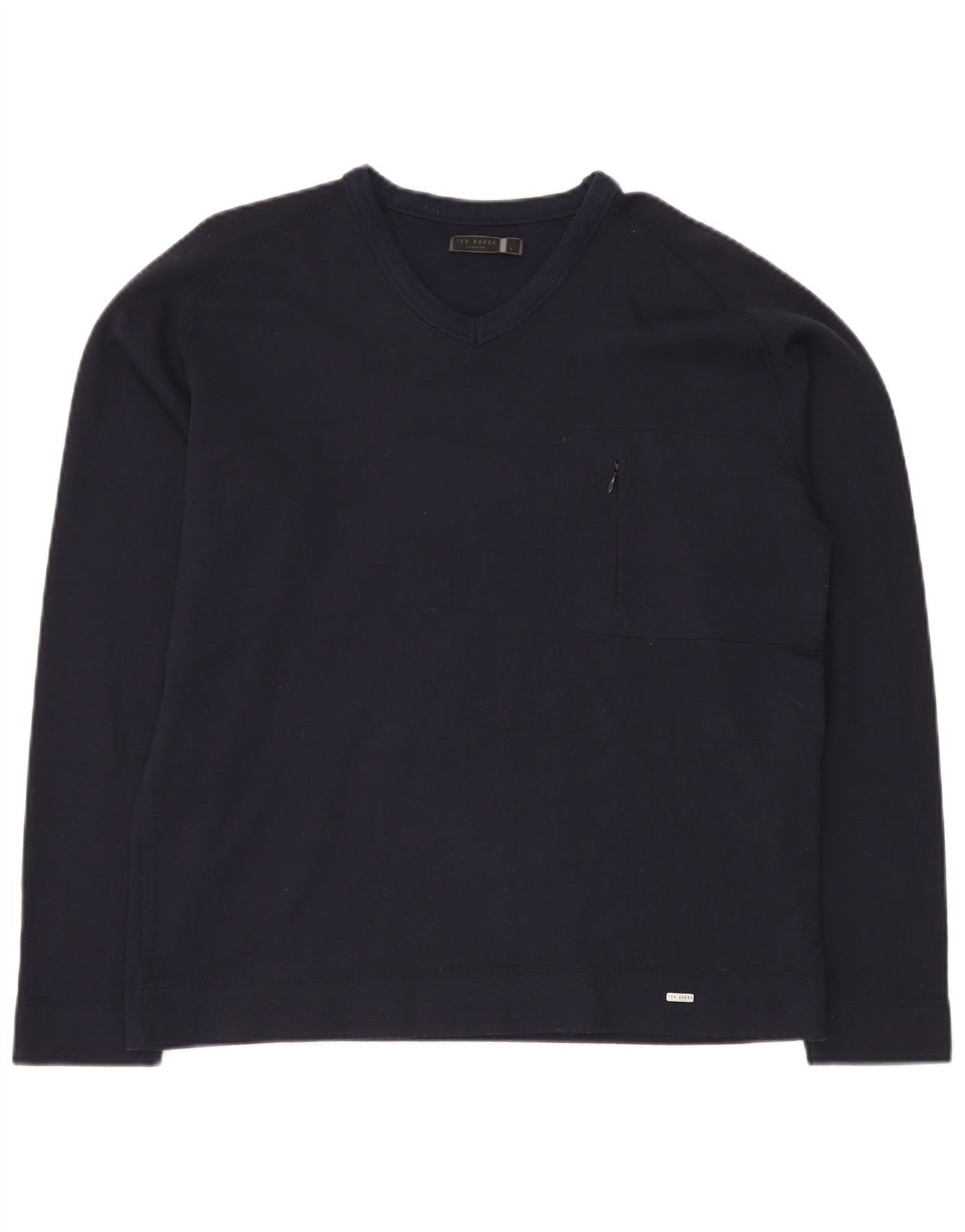 TED BAKER Herren-Pullover mit V-Ausschnitt, Größe 5, XL, marineblaue Baumwolle