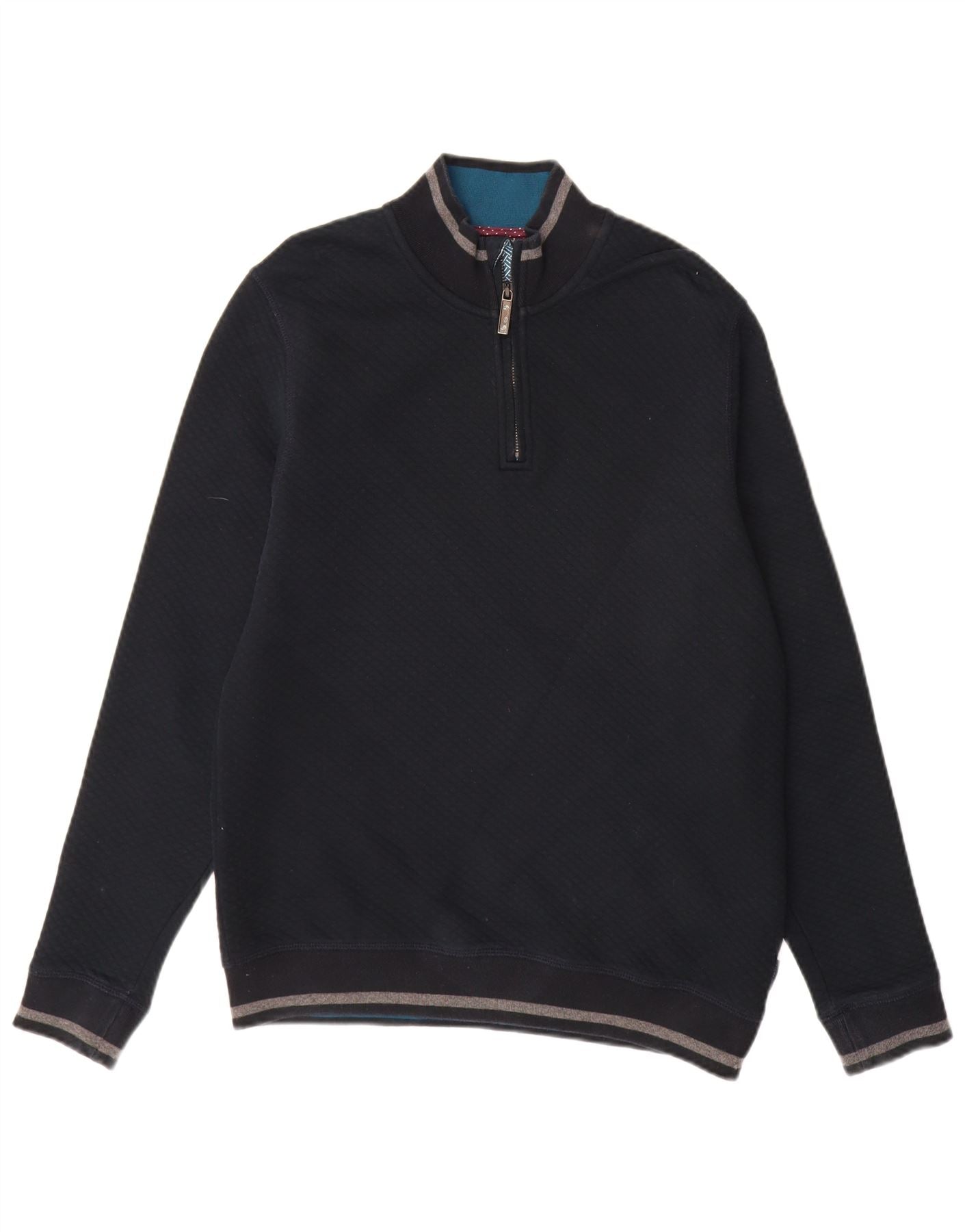 TED BAKER Mens Zip Neck Sweatshirt Jumper Medium Navy Blue Cotton