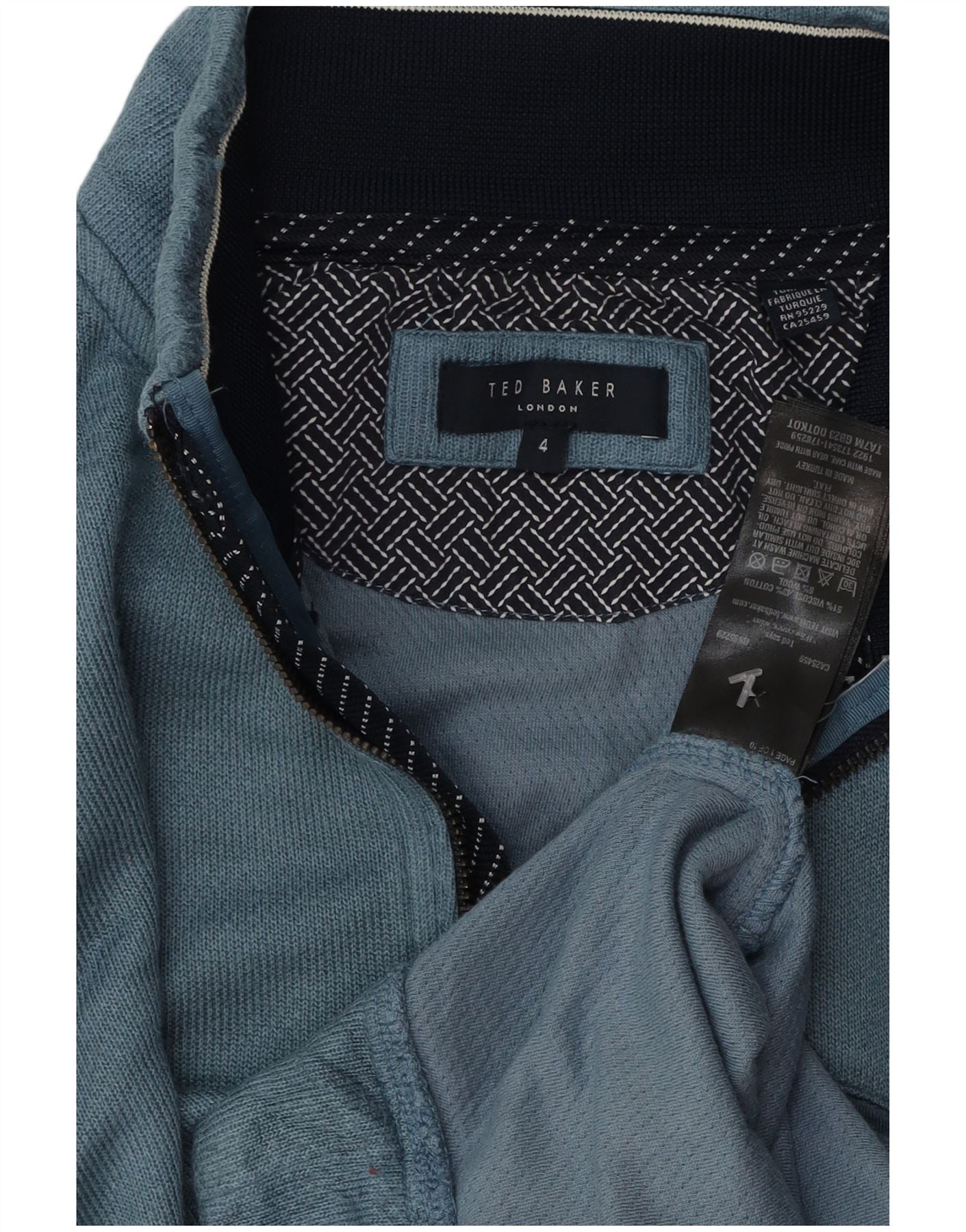 TED BAKER Herren-Sweatshirt mit Reißverschluss am Hals, Größe 4, groß, blaue Baumwolle