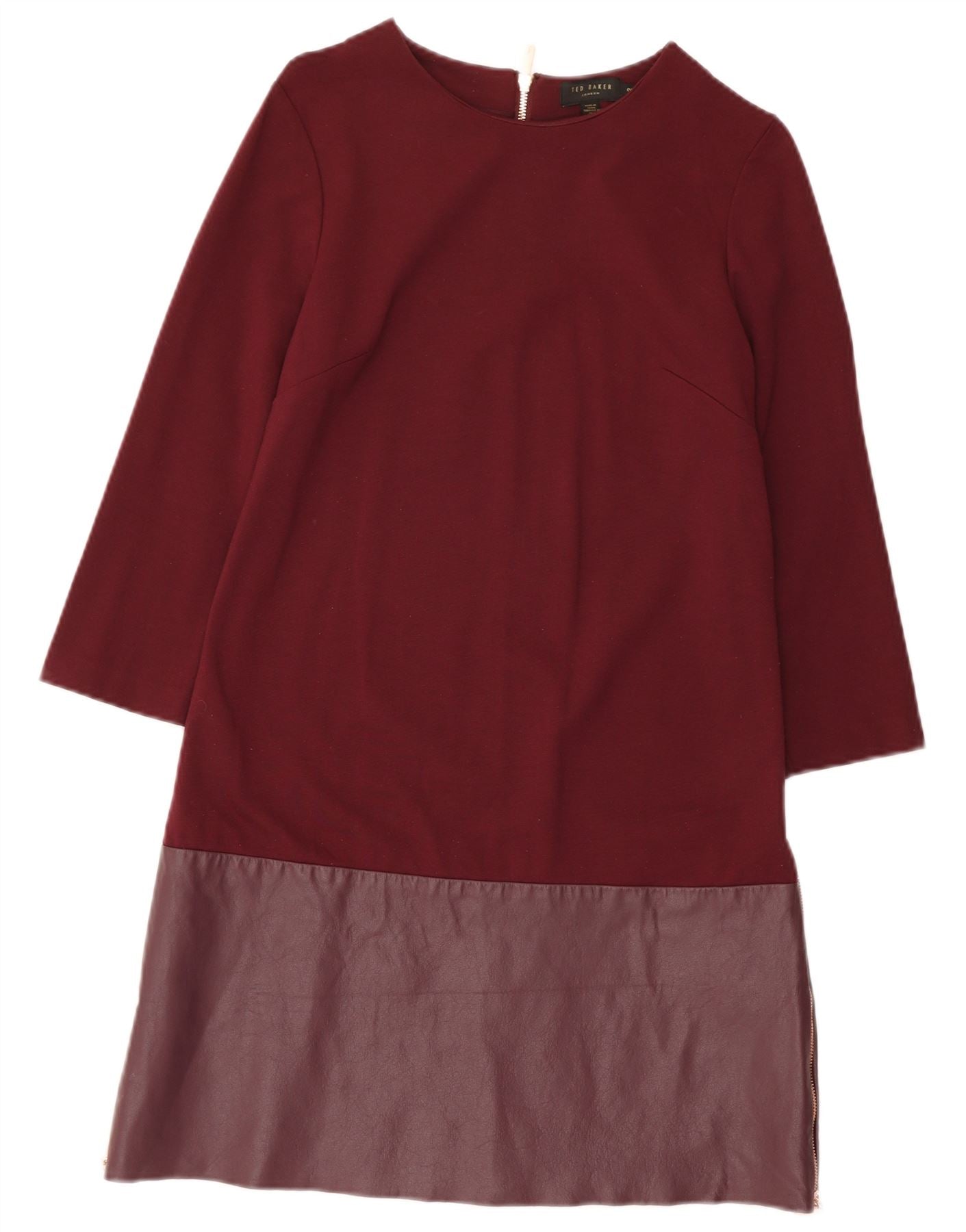 TED BAKER Womens 3/4 Sleeve Shift Dress Size 2 Small Burgundy Viscose