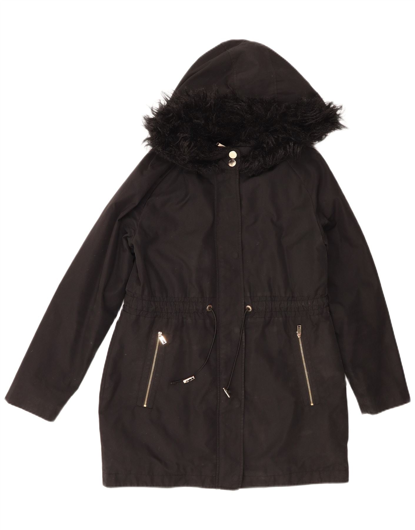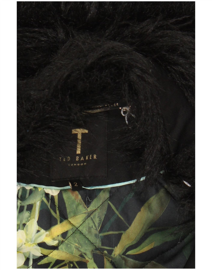 TED BAKER Womens Hooded Parka Jacket Size 2 Small Black Polyester