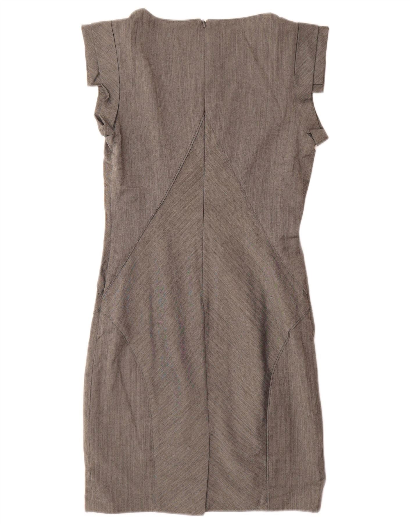 Ärmelloses Etuikleid für Damen von TED BAKER, Größe 2, klein, graues Fischgrätenmuster