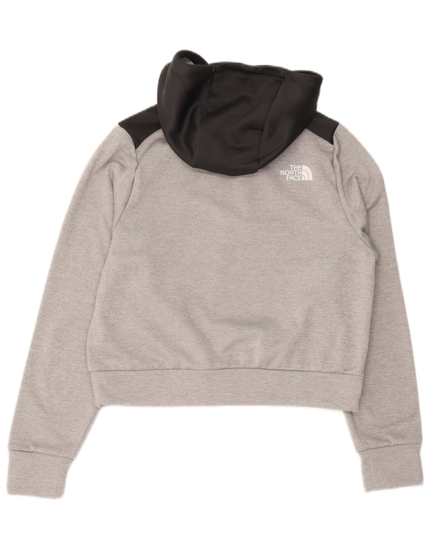 THE NORTH FACE Damen Crop Hoodie Pullover UK 12 Mittelgrau Farbblock