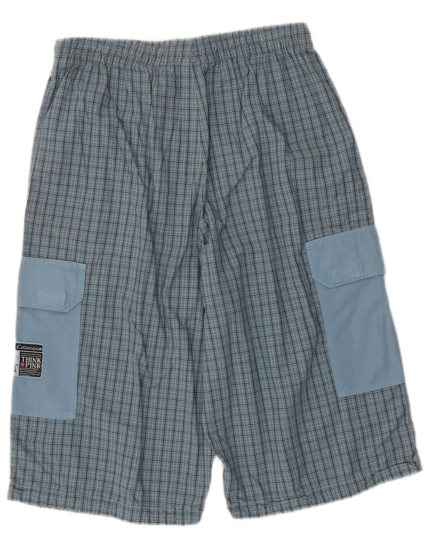 THINK PINK Herren-Cargoshorts, Größe M, W30, blau karierte Baumwolle