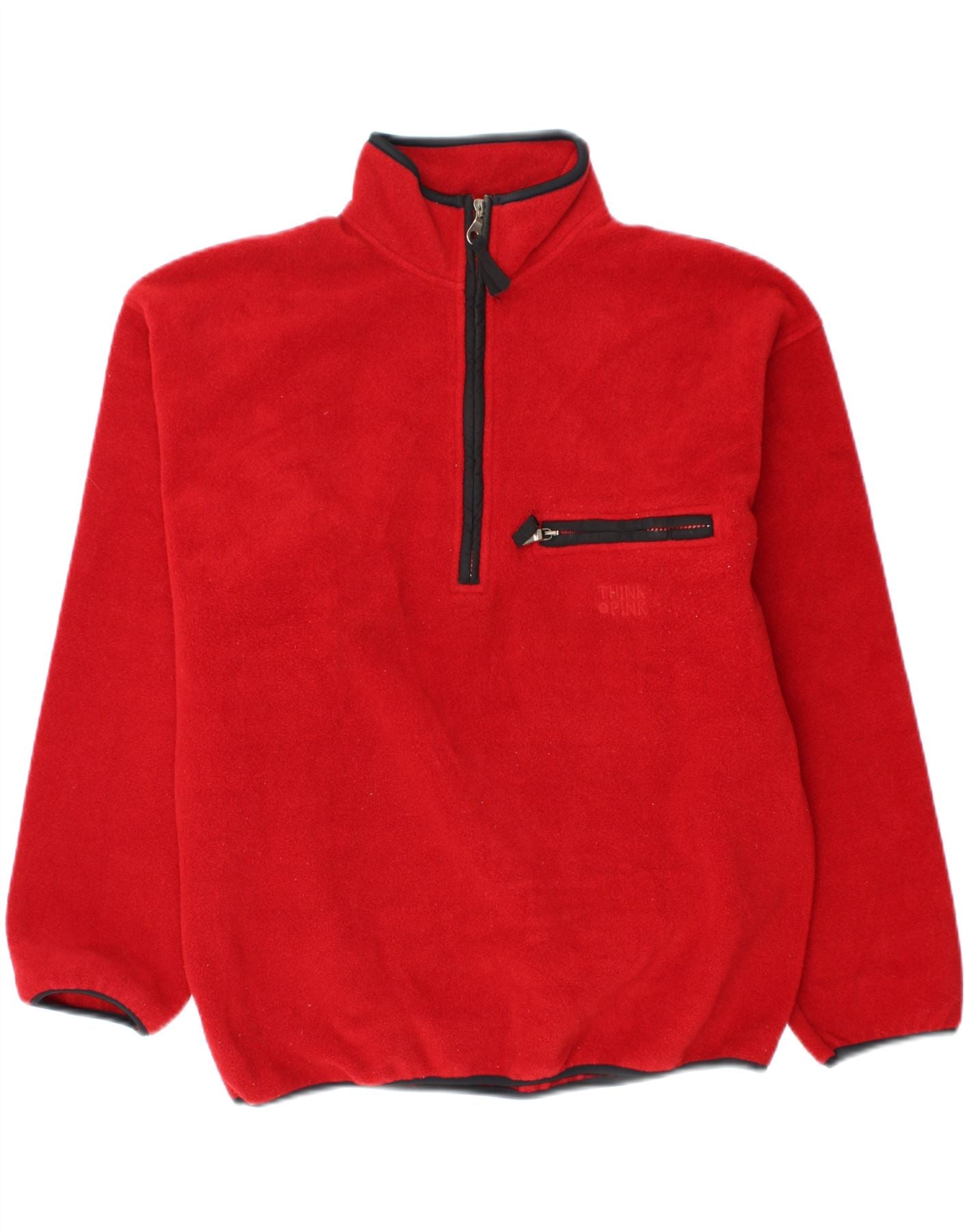 THINK PINK Herren-Fleecepullover mit Reißverschluss am Hals, kleines rotes Polyester
