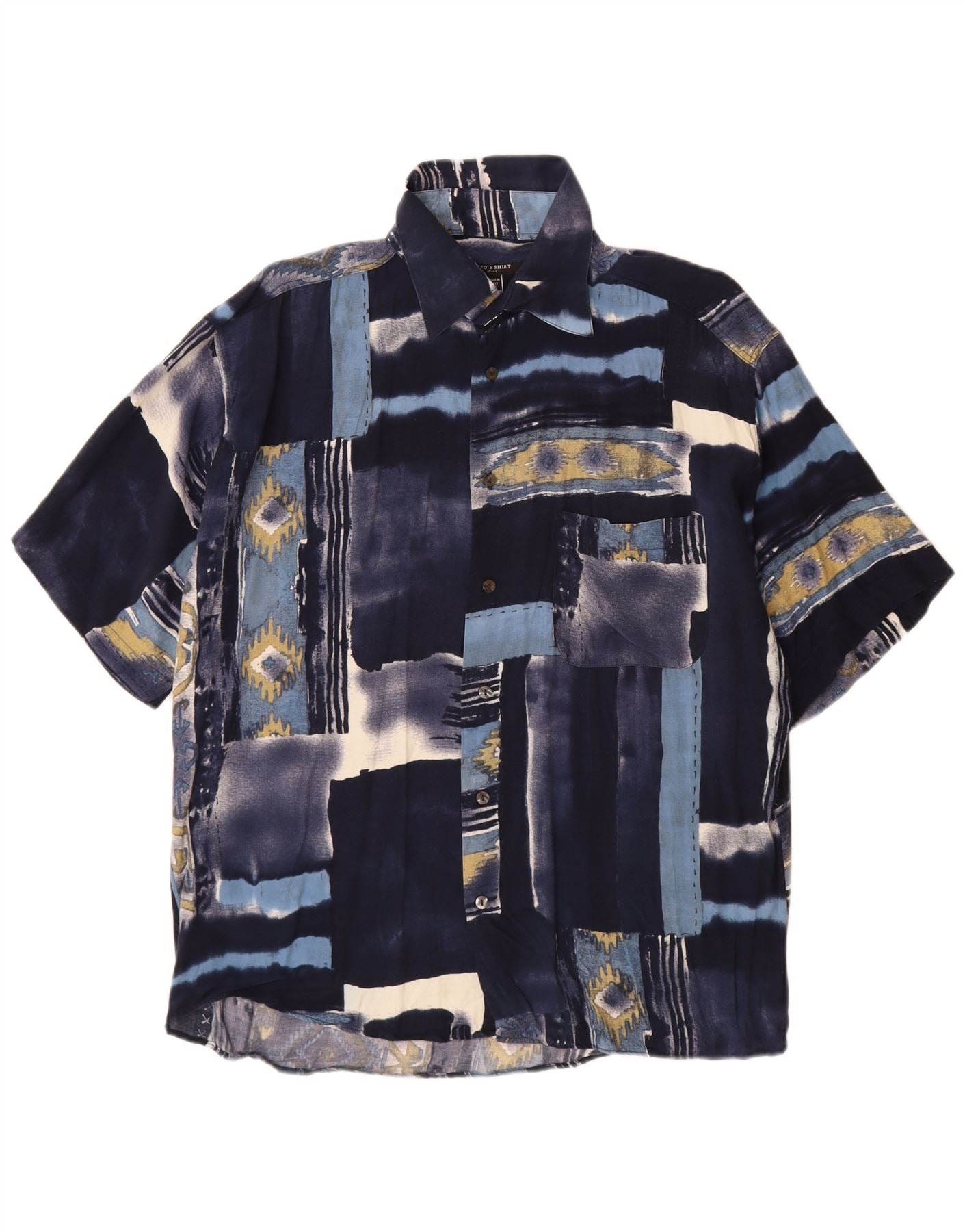 TIPO' S Herren-Kurzarmhemd, groß, Marineblau, Patchwork-Viskose