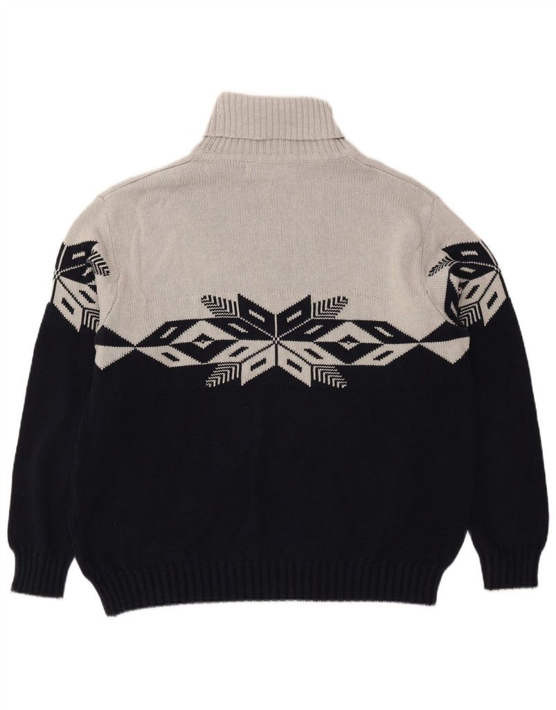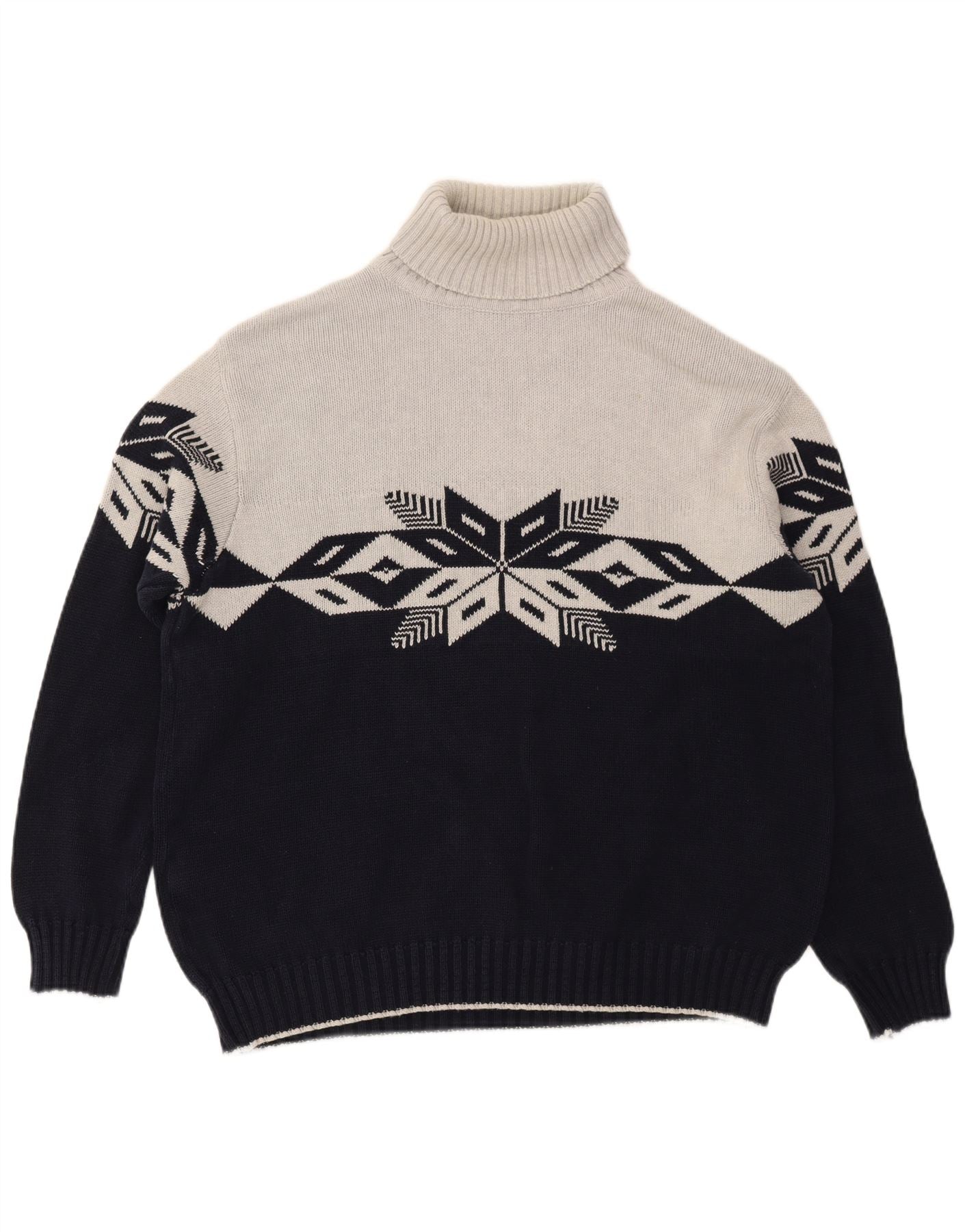 TOM TAILOR Mens Roll Neck Jumper Sweater XL Grey Fair Isle Cotton
