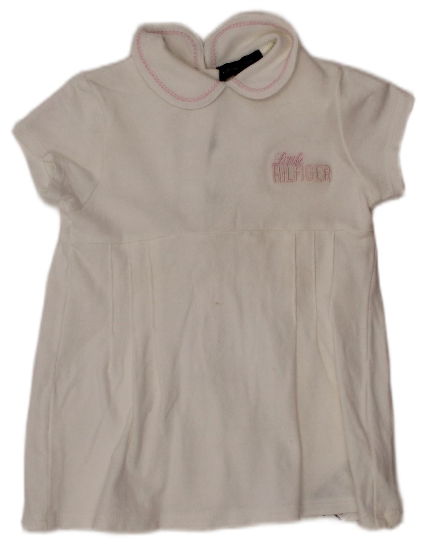 TOMMY HILFIGER Baby-Mädchen, grafisches A-Linien-Kleid, 6–9 Monate, weiße Baumwolle