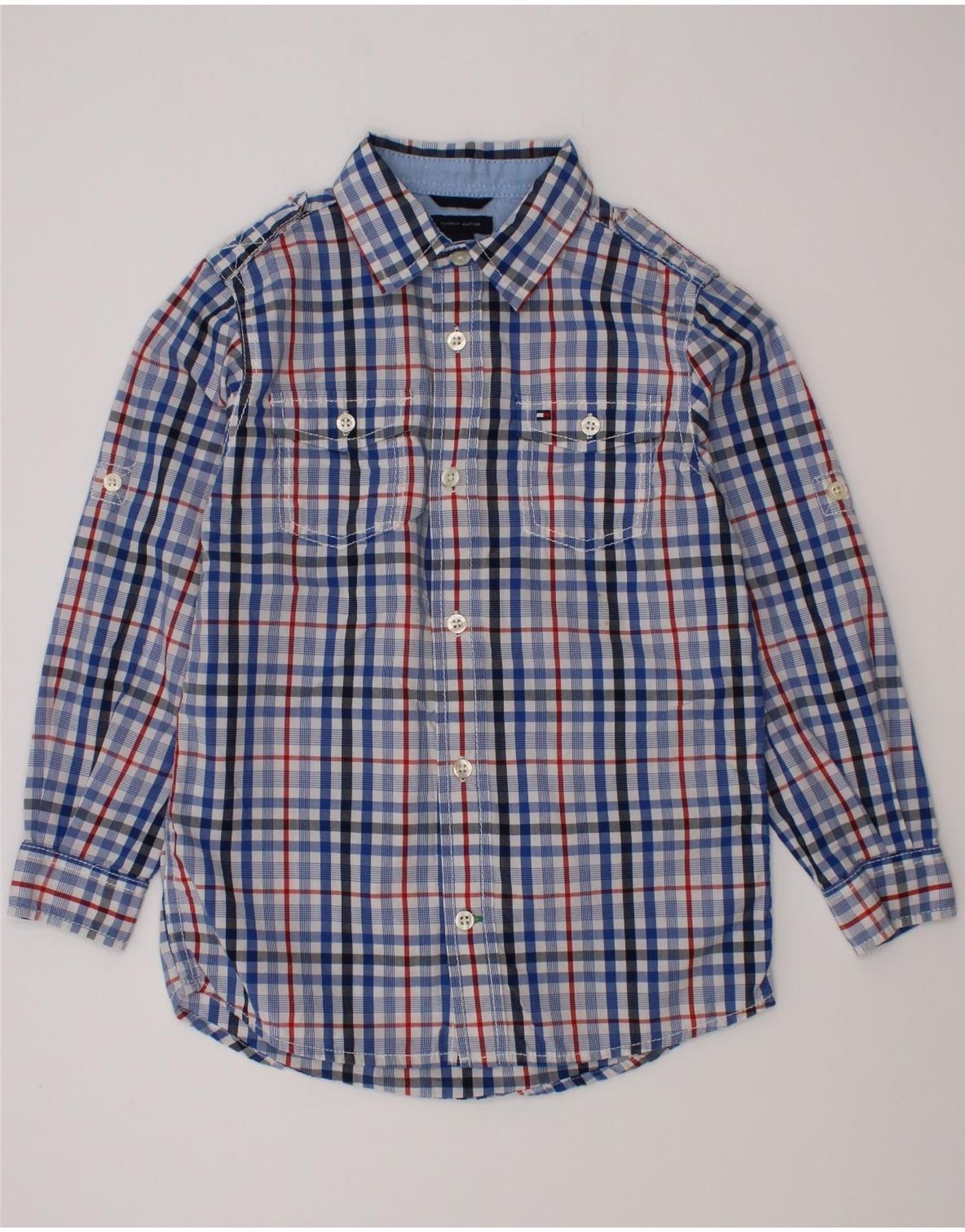 Tommy Hilfiger Hemd für Jungen, 5–6 Jahre, blau kariert, Baumwolle