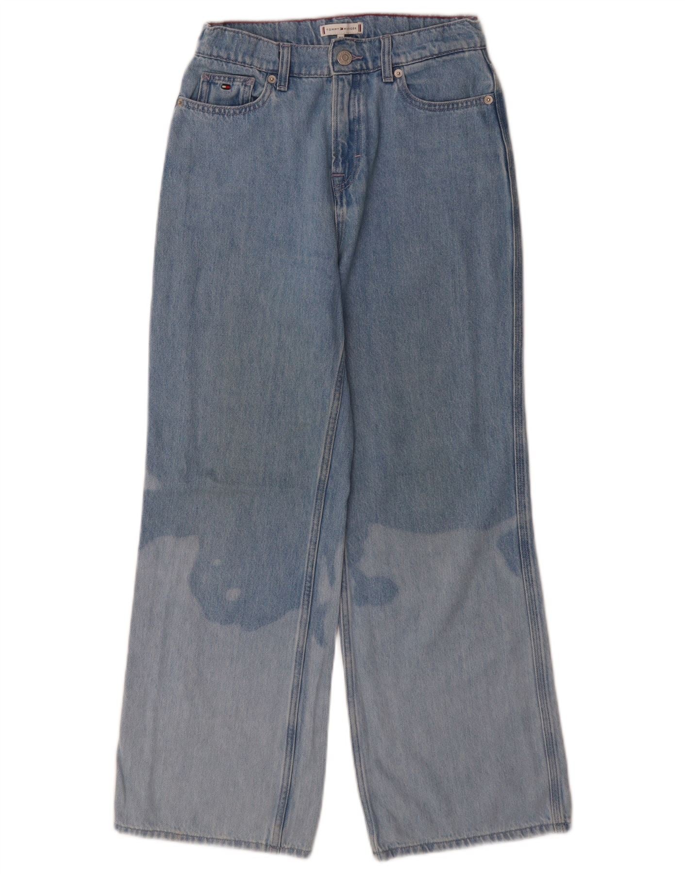 TOMMY HILFIGER Mädchen-Jeans mit weitem Bein, Acid-Waschung, 13–14 Jahre, W26 L27, Blau