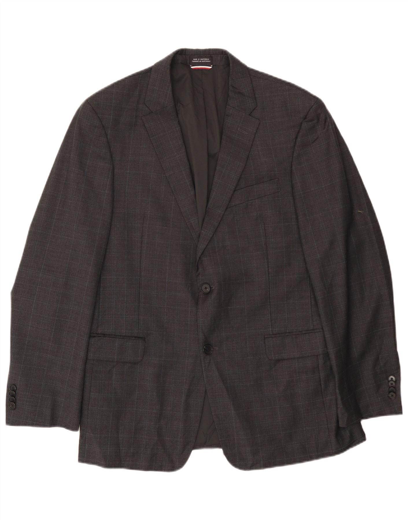 Tommy Hilfiger Herren-Blazer mit 2 Knöpfen, UK 40, große grau karierte Wolle