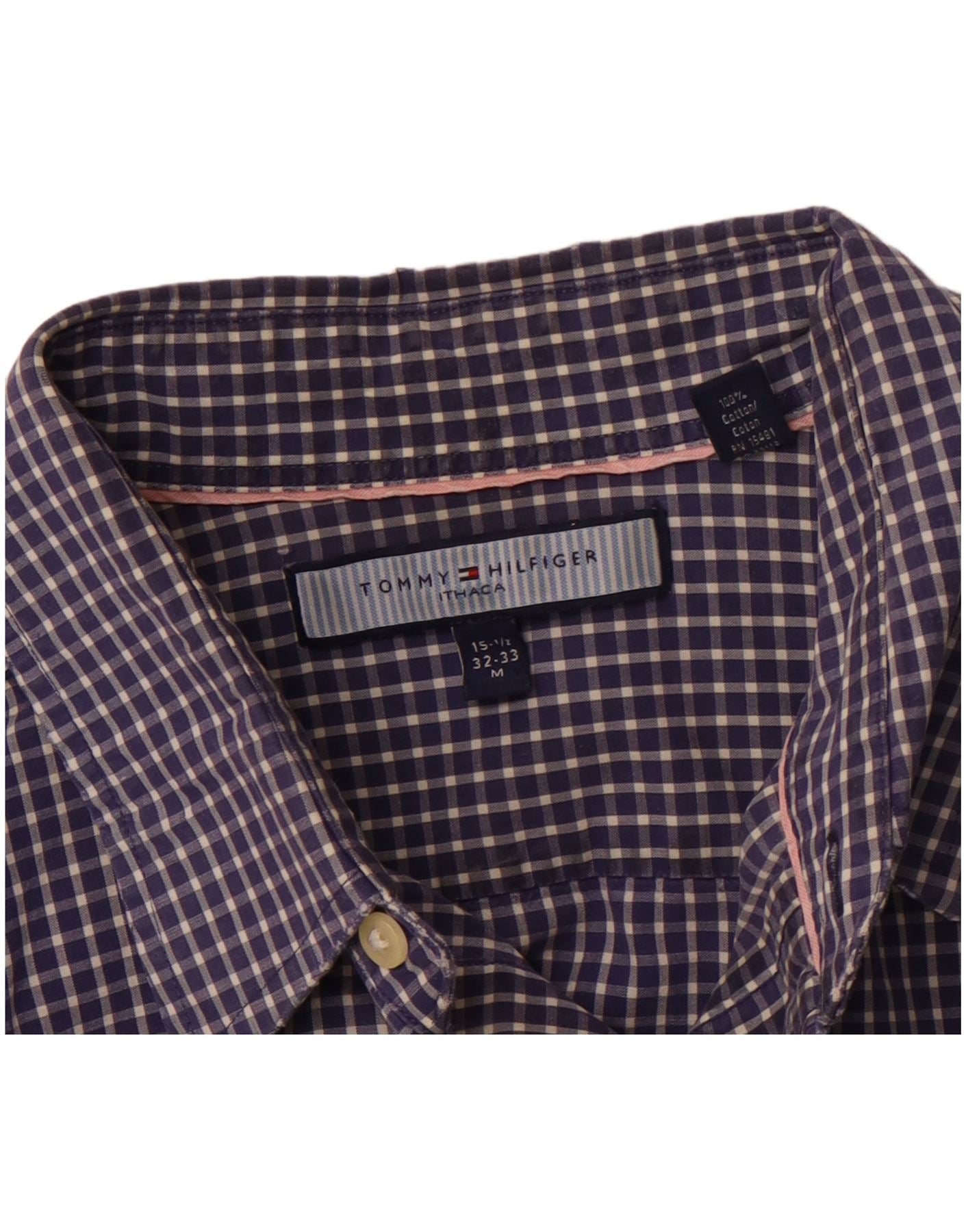 TOMMY HILFIGER kariertes Herrenhemd, Größe 15 1/2, mittelmarineblaue Baumwolle