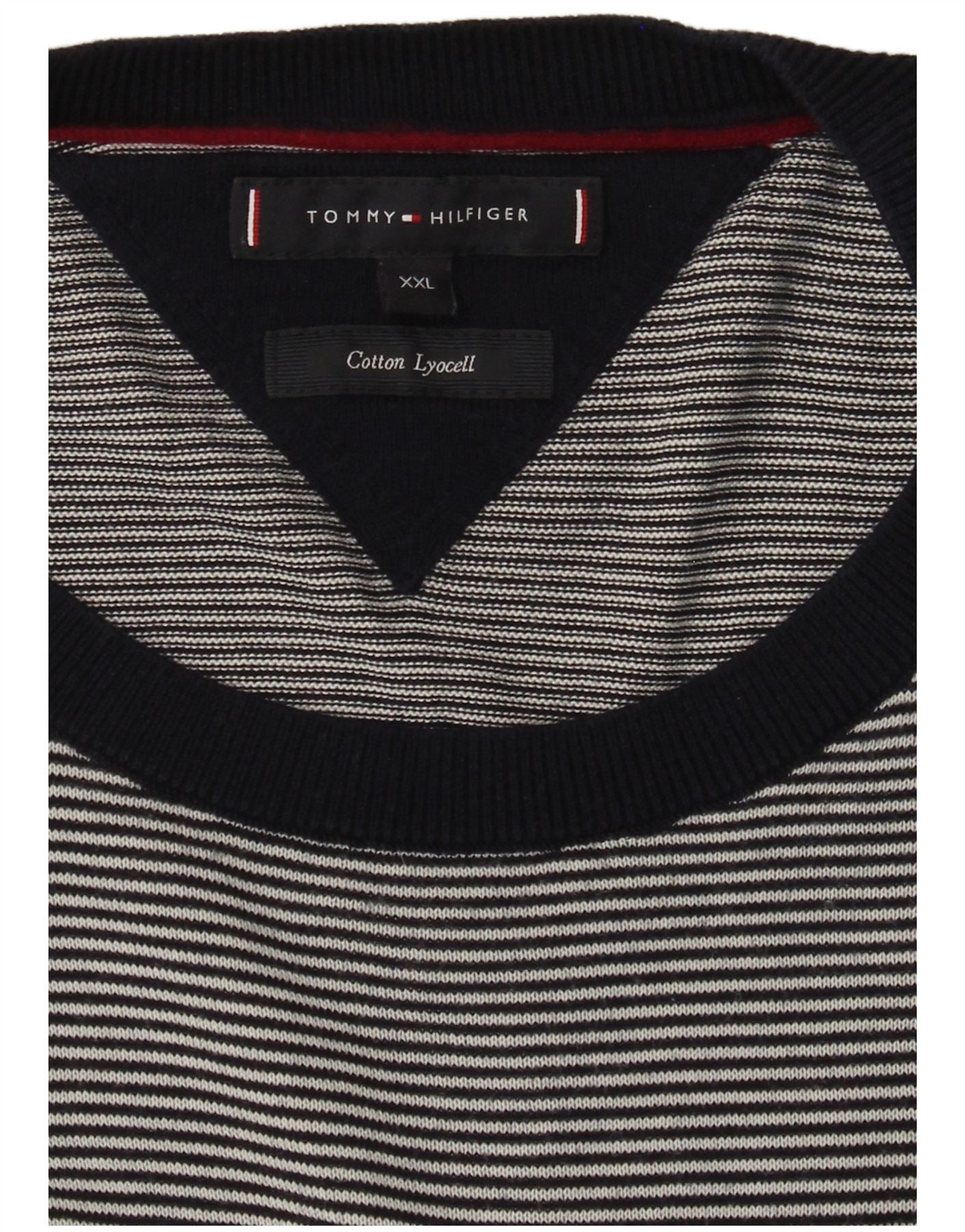 TOMMY HILFIGER Herren-Pullover mit Rundhalsausschnitt, 2XL, Marineblau, Nadelstreifen