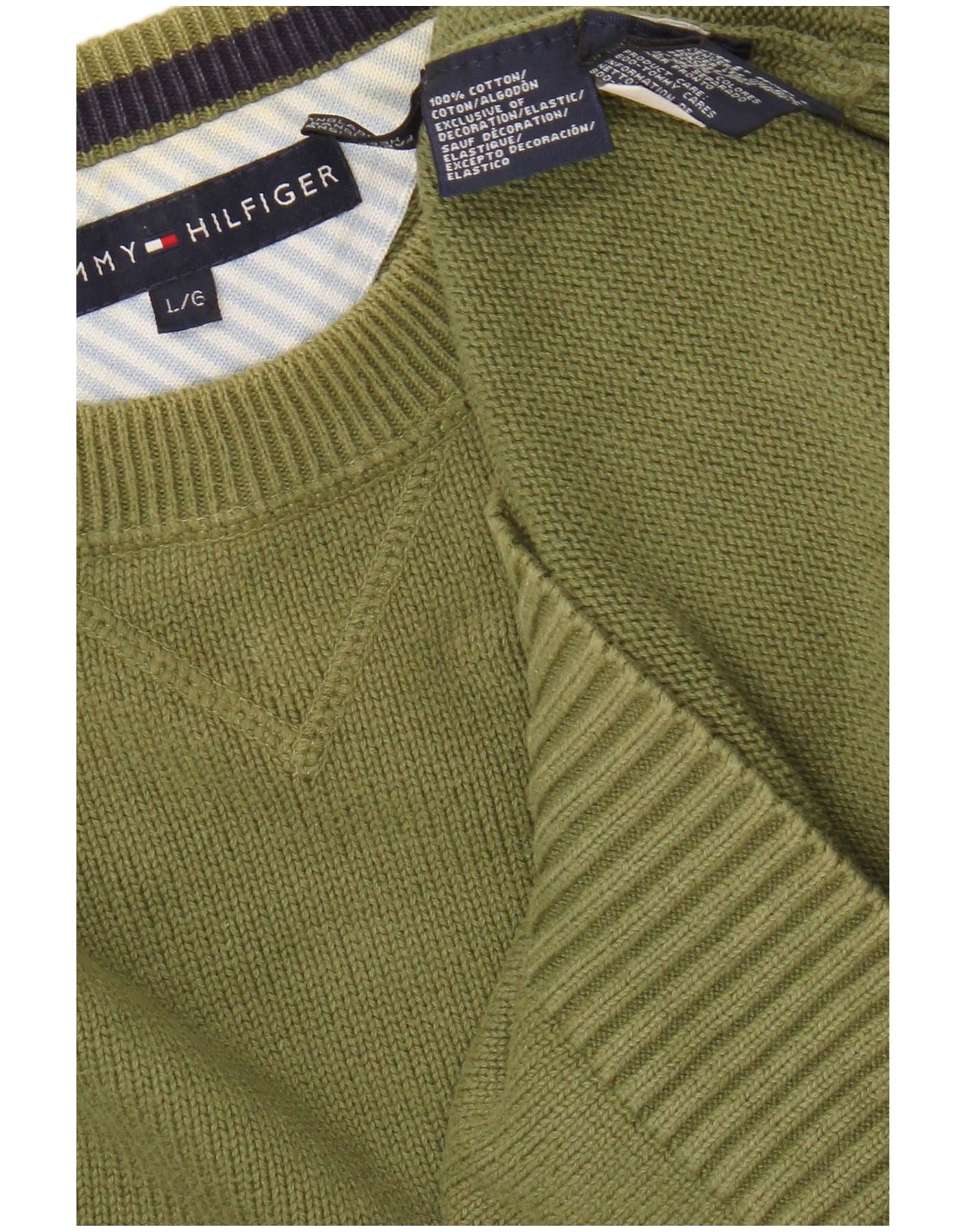 Tommy Hilfiger Herren-Pullover mit Rundhalsausschnitt, groß, Khaki, Baumwolle
