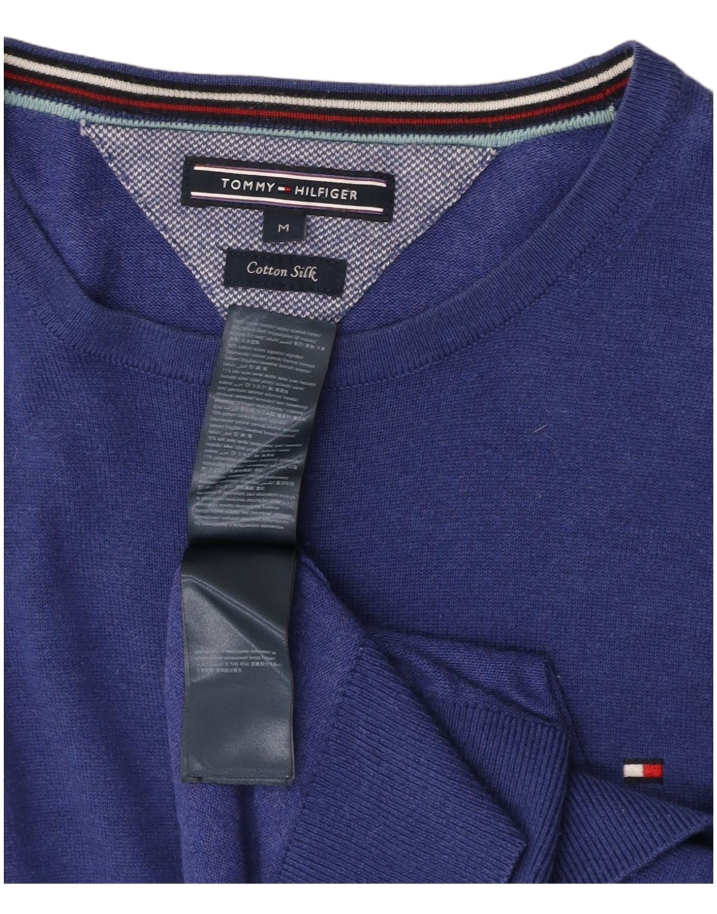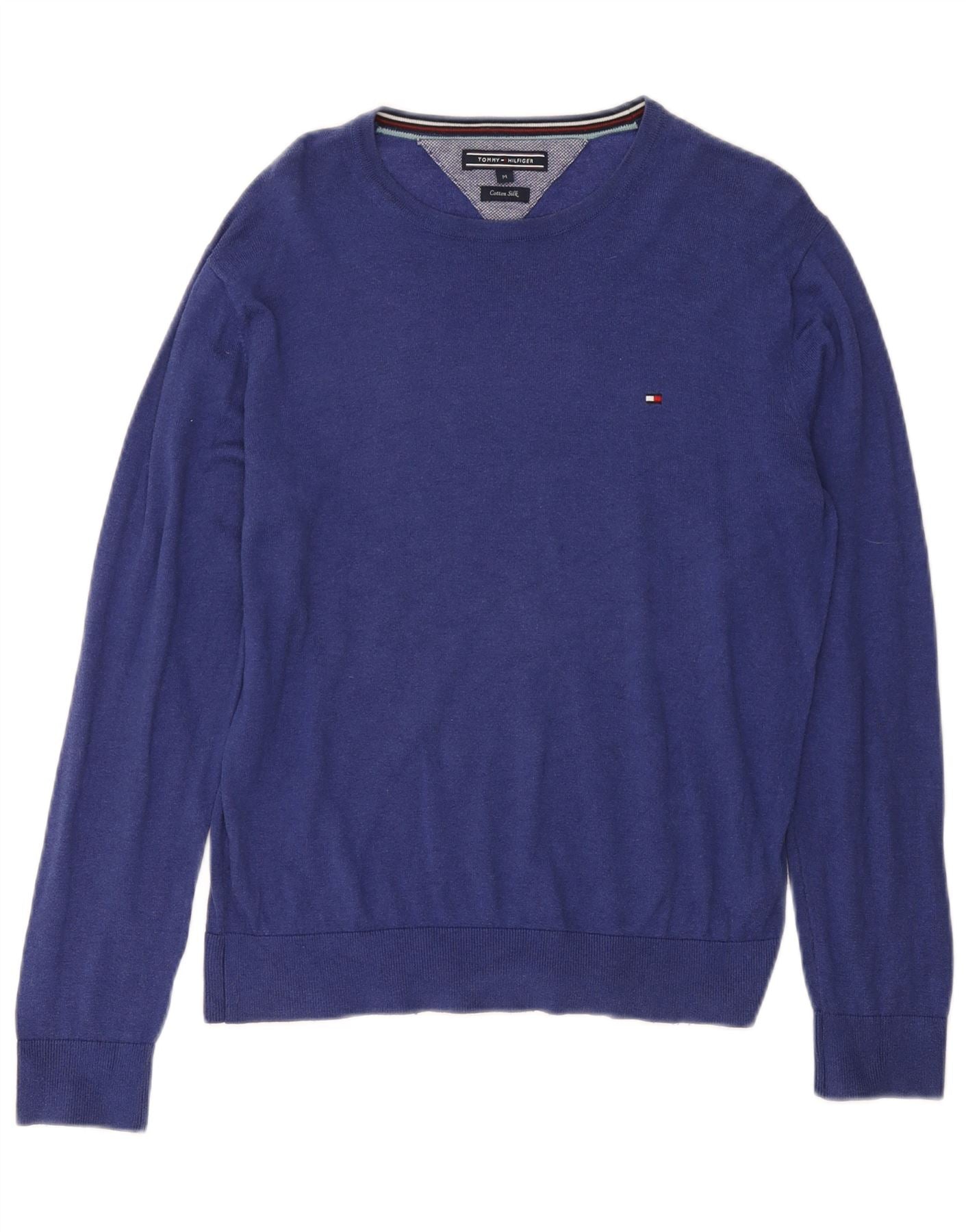 TOMMY HILFIGER Mens Crew Neck Jumper Sweater Medium Blue Cotton