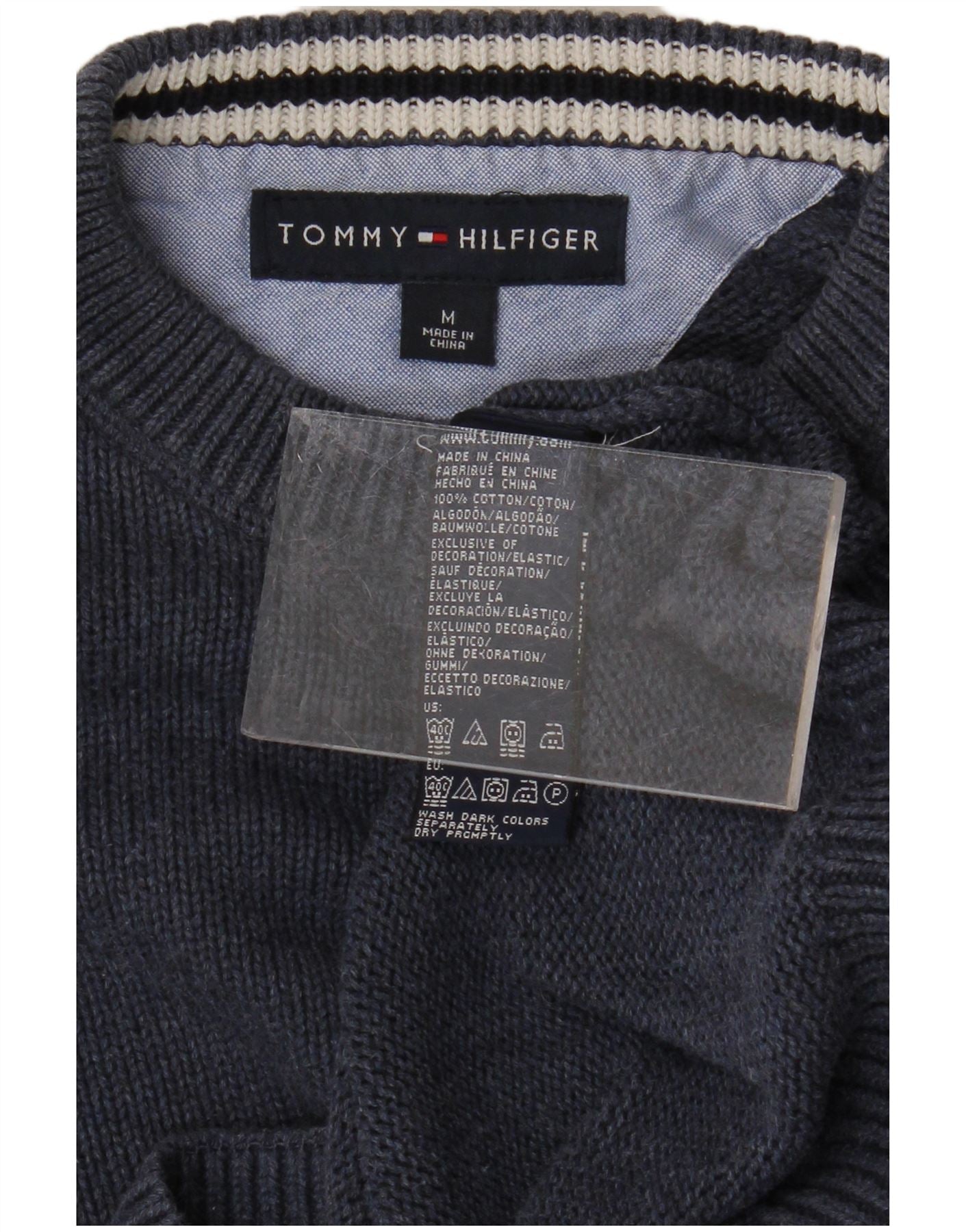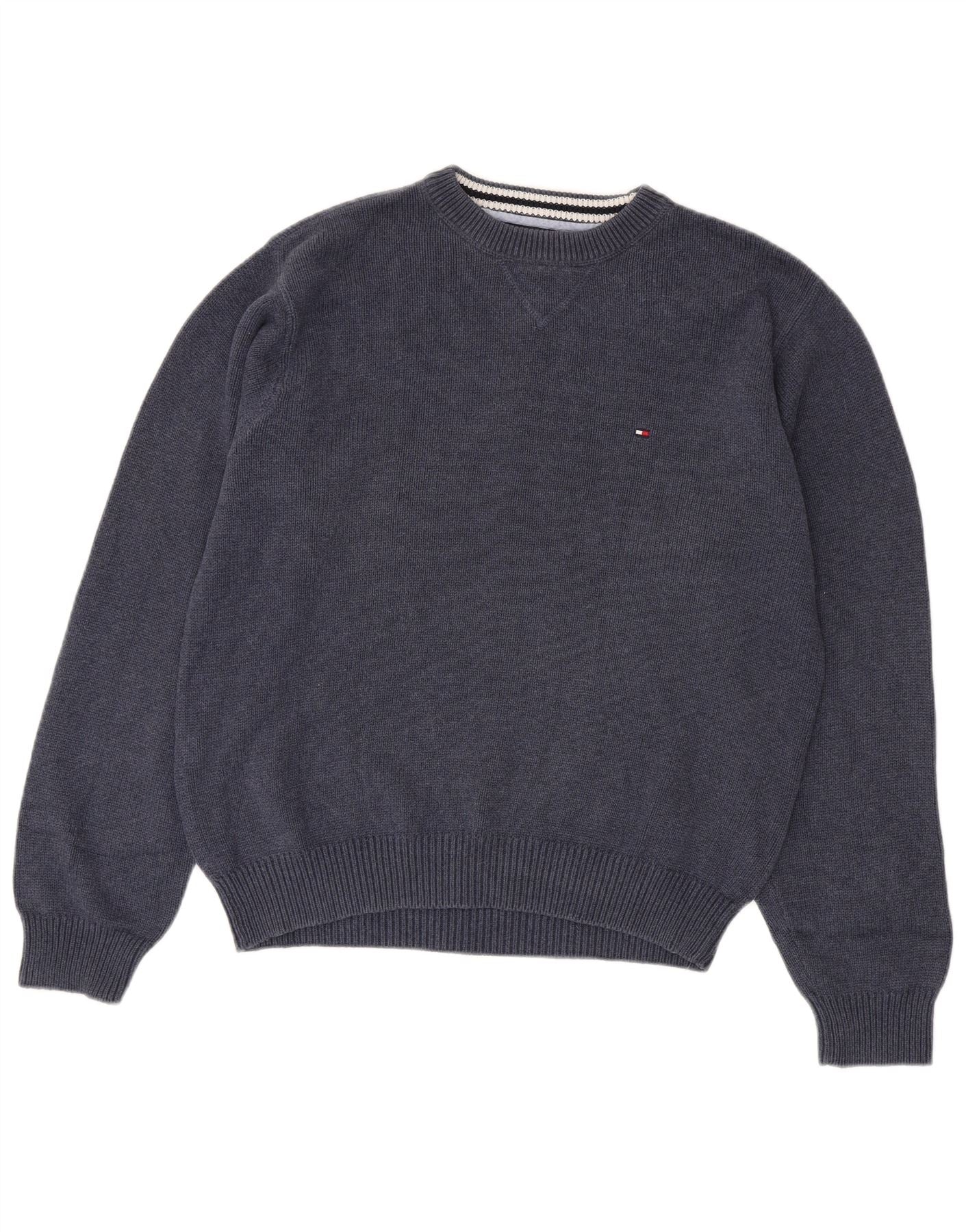 TOMMY HILFIGER Herren-Pullover mit Rundhalsausschnitt, mittelmarineblaue Baumwolle