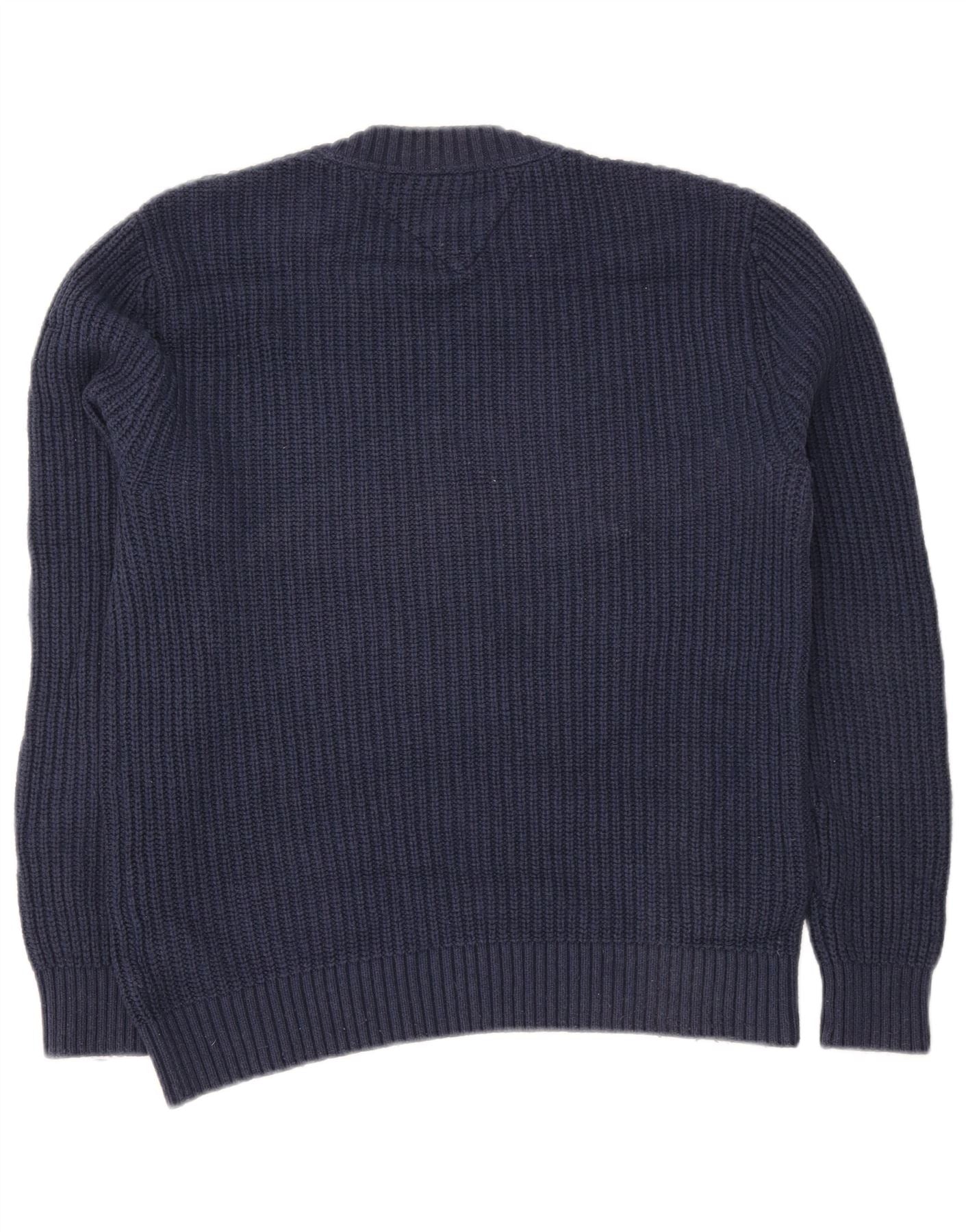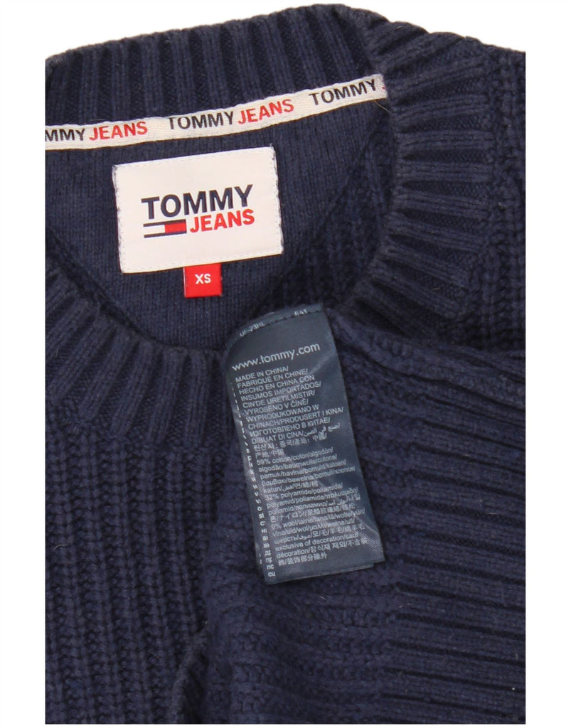 TOMMY HILFIGER Mens Crew Neck Jumper Sweater XS Navy Blue Cotton