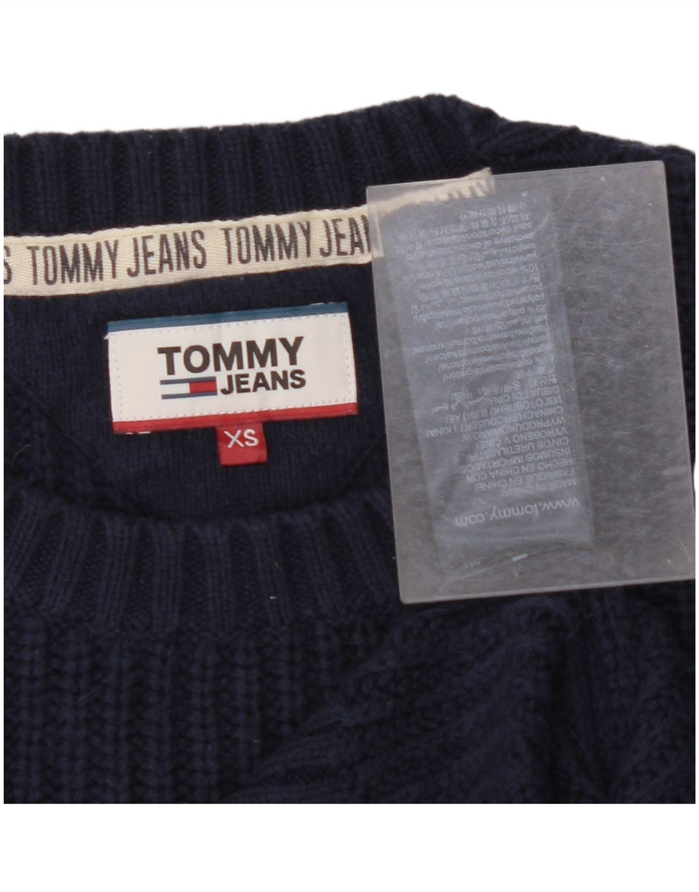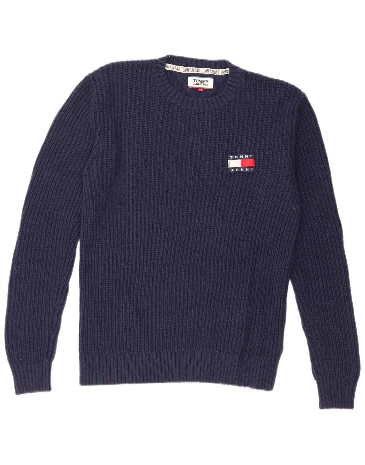 TOMMY HILFIGER Mens Crew Neck Jumper Sweater XS Navy Blue Cotton