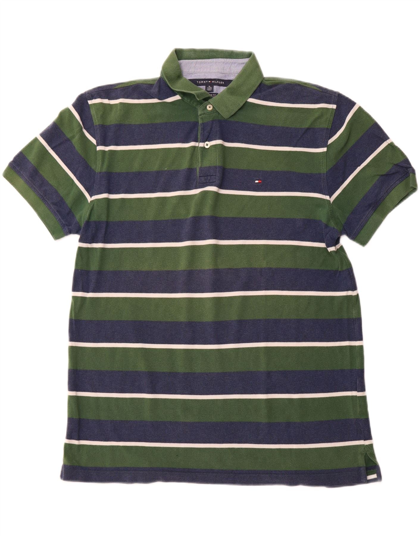 TOMMY HILFIGER Herren Custom Fit Poloshirt XL grün gestreift Baumwolle