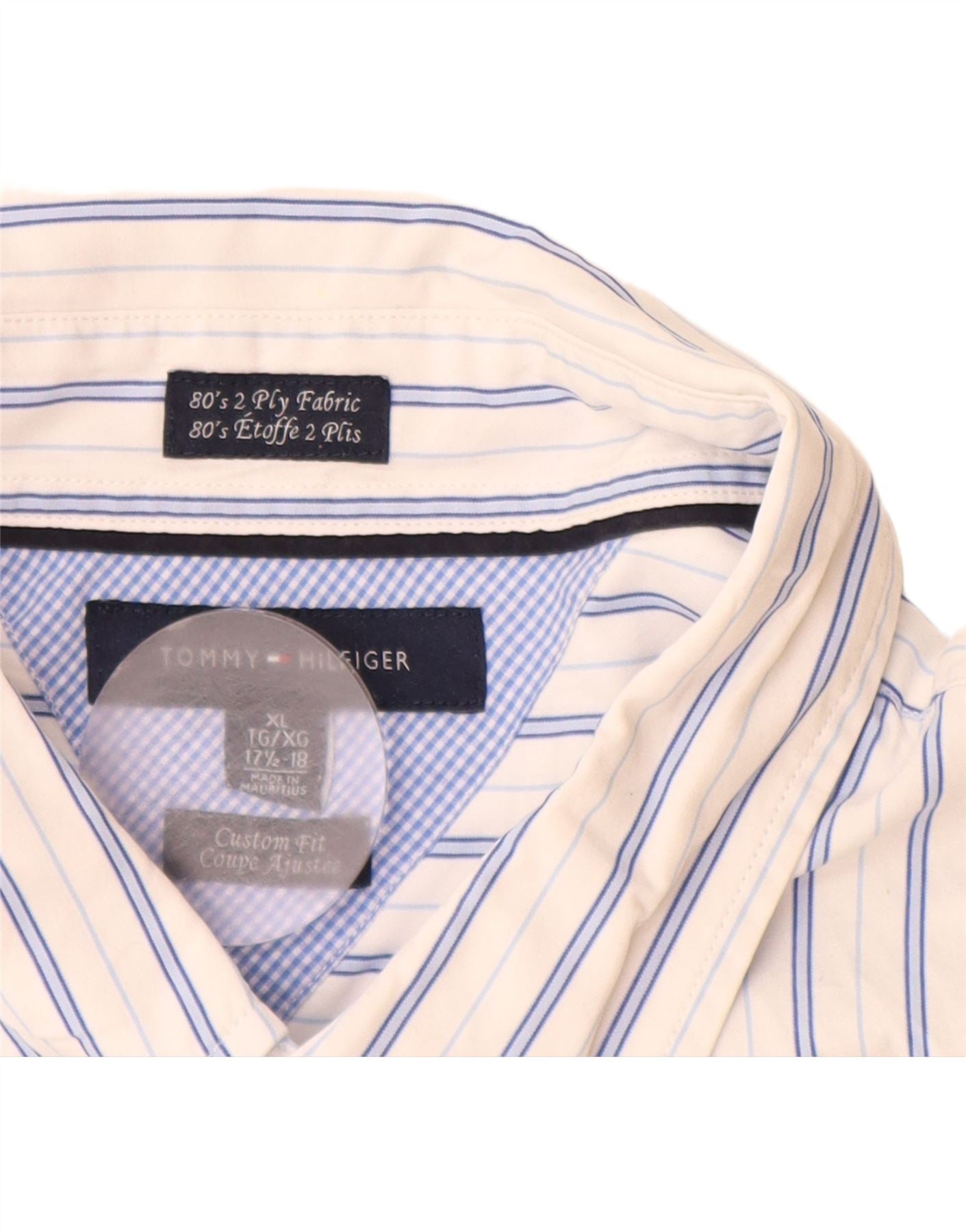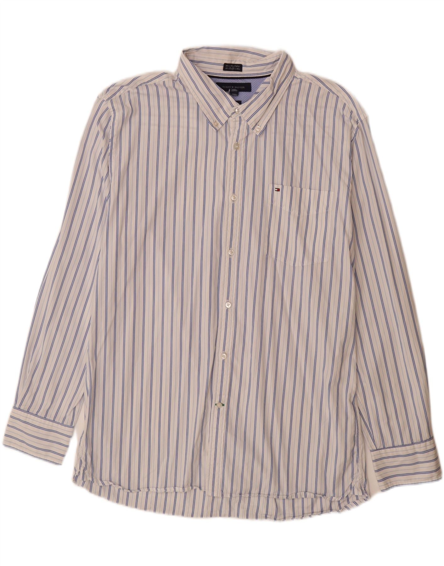 TOMMY HILFIGER Herren-Hemd mit individueller Passform, Größe 17 1/2 XL, blau gestreift, Baumwolle