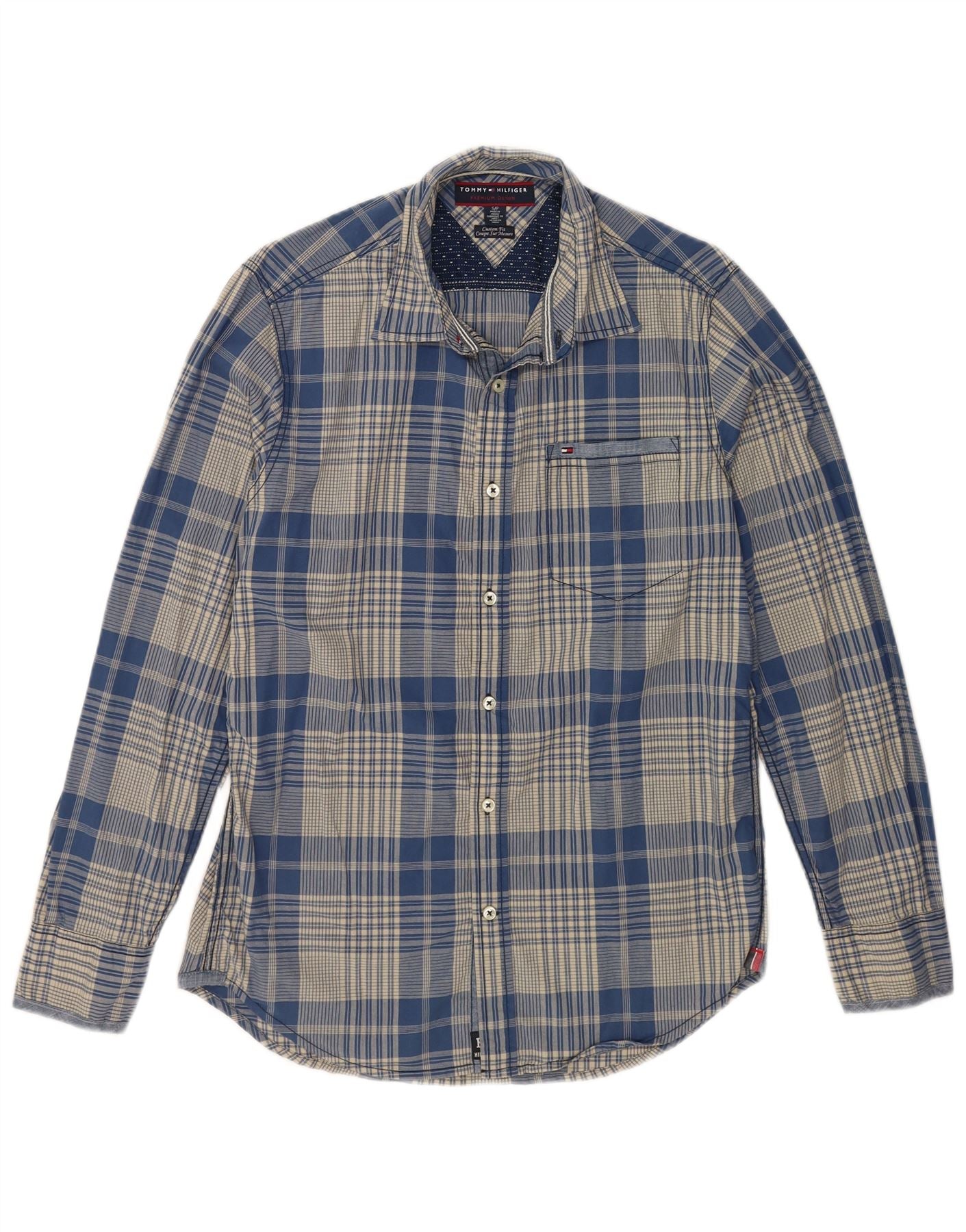 TOMMY HILFIGER Herren-Hemd mit individueller Passform, klein, blau kariert, Baumwolle