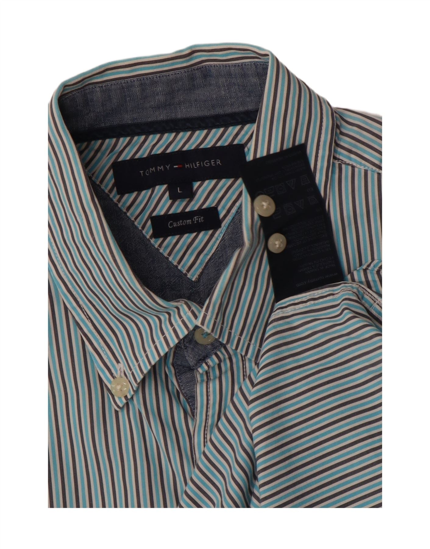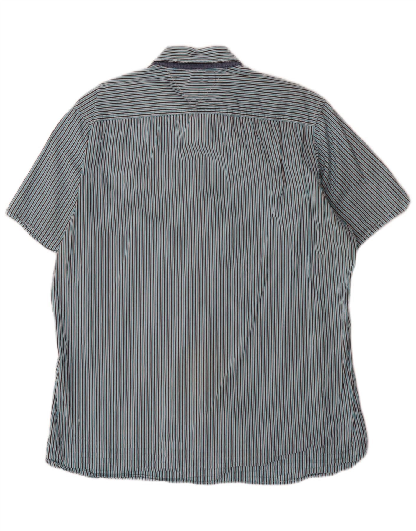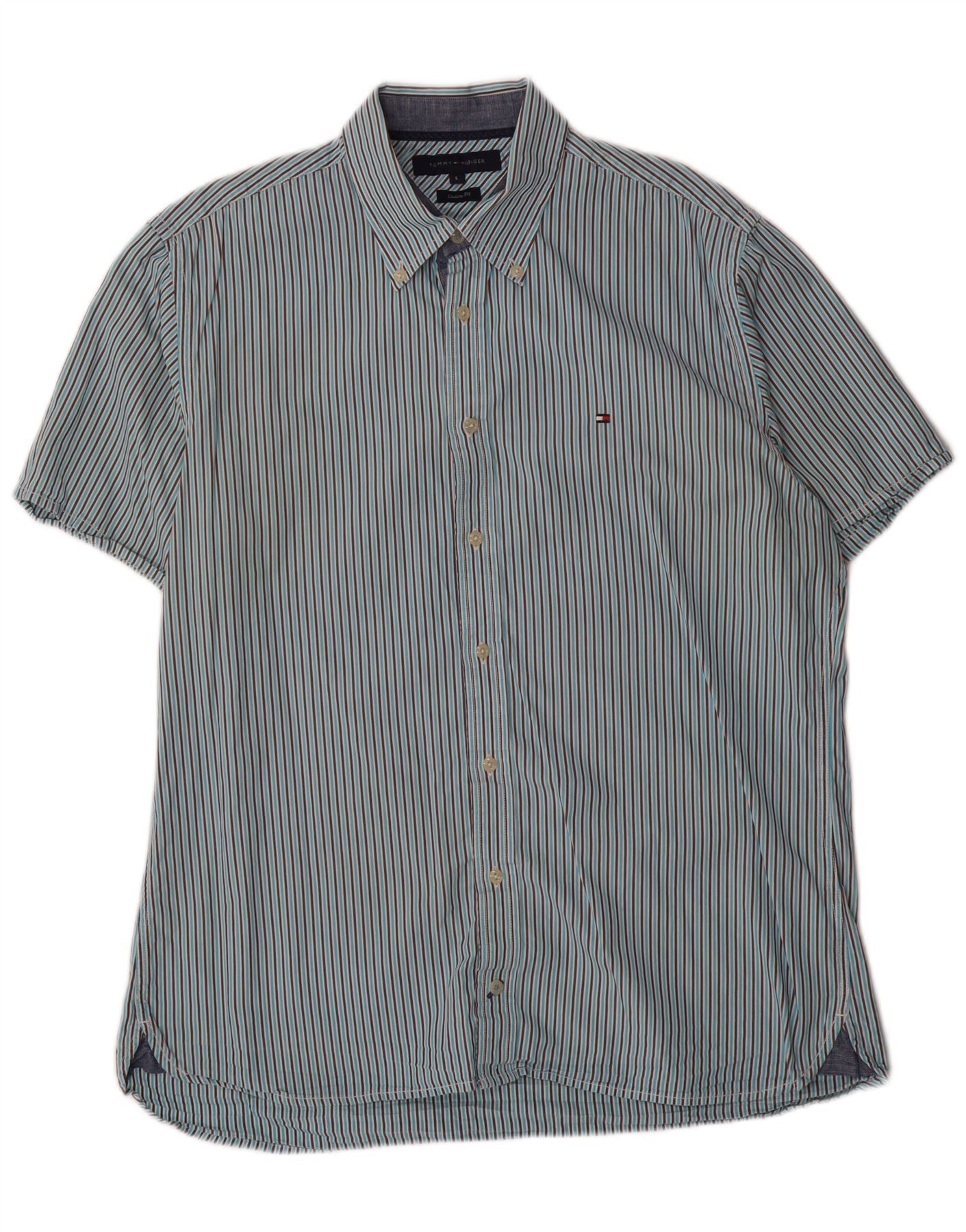 TOMMY HILFIGER Herren Custom Fit Kurzarmhemd groß blau gestreift