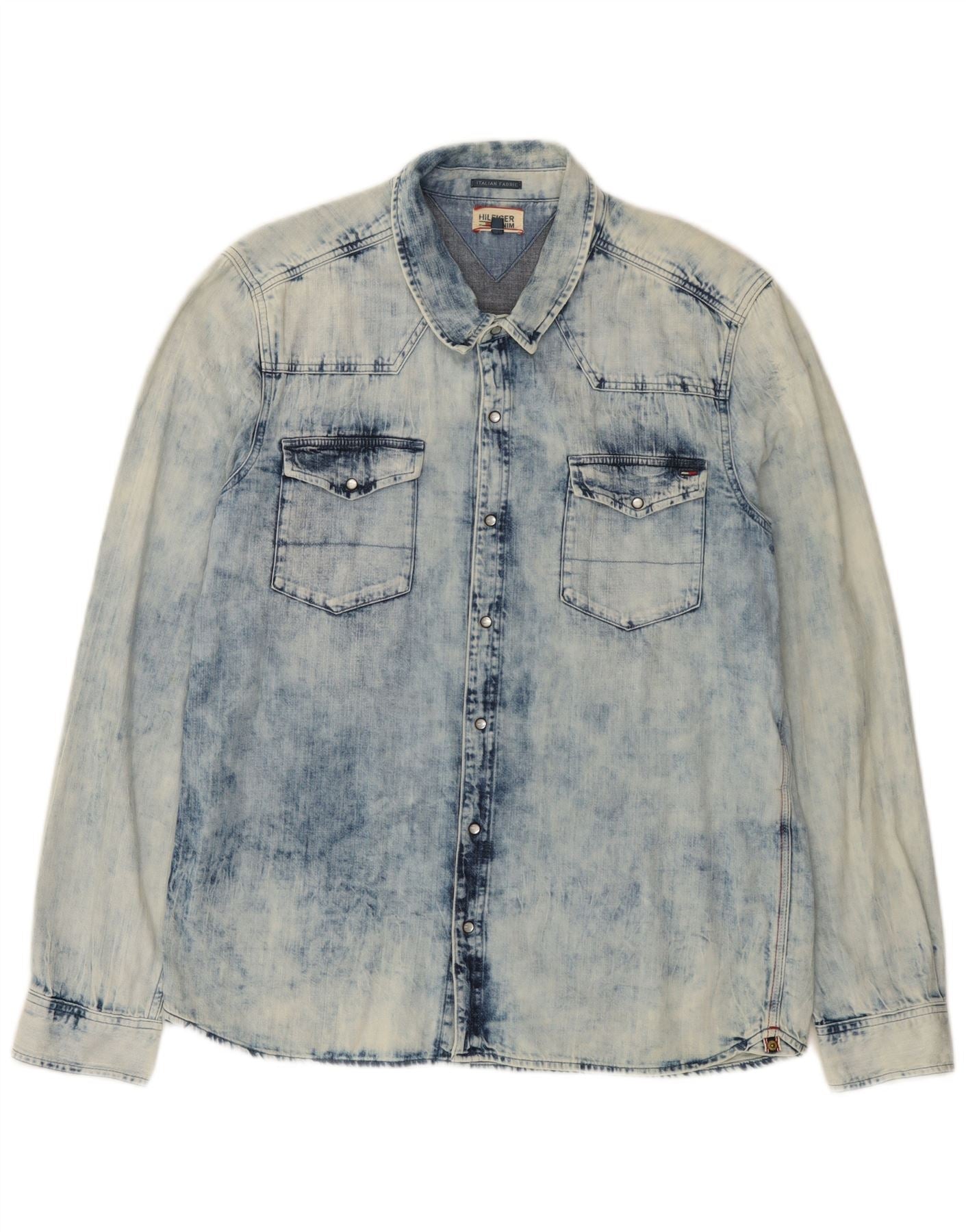 - KI-Beschreibung: Dieses Herren-Jeanshemd von Tommy Hilfiger ist aus 100-Baumwoll-Denim mit einem charakteristischen blauen Acid-Wash-Finish gefertigt. Es verfügt über einen klassischen Kragenausschnitt und lange Ärmel. Der Western-Stil wird durch Druckknopfverschlüsse und zwei Brusttaschen deutlich. Die reguläre Passform sorgt für angenehmen Tragekomfort und macht es zu einer vielseitigen Ergänzung jeder Freizeitgarderobe. Die Säurewäsche sorgt für einen einzigartigen, strukturierten Look.