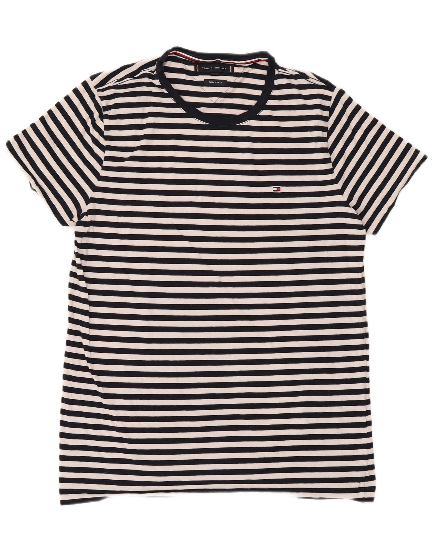 TOMMY HILFIGER Herren-T-Shirt, extra schmal, groß, marineblau, gestreift, Baumwolle