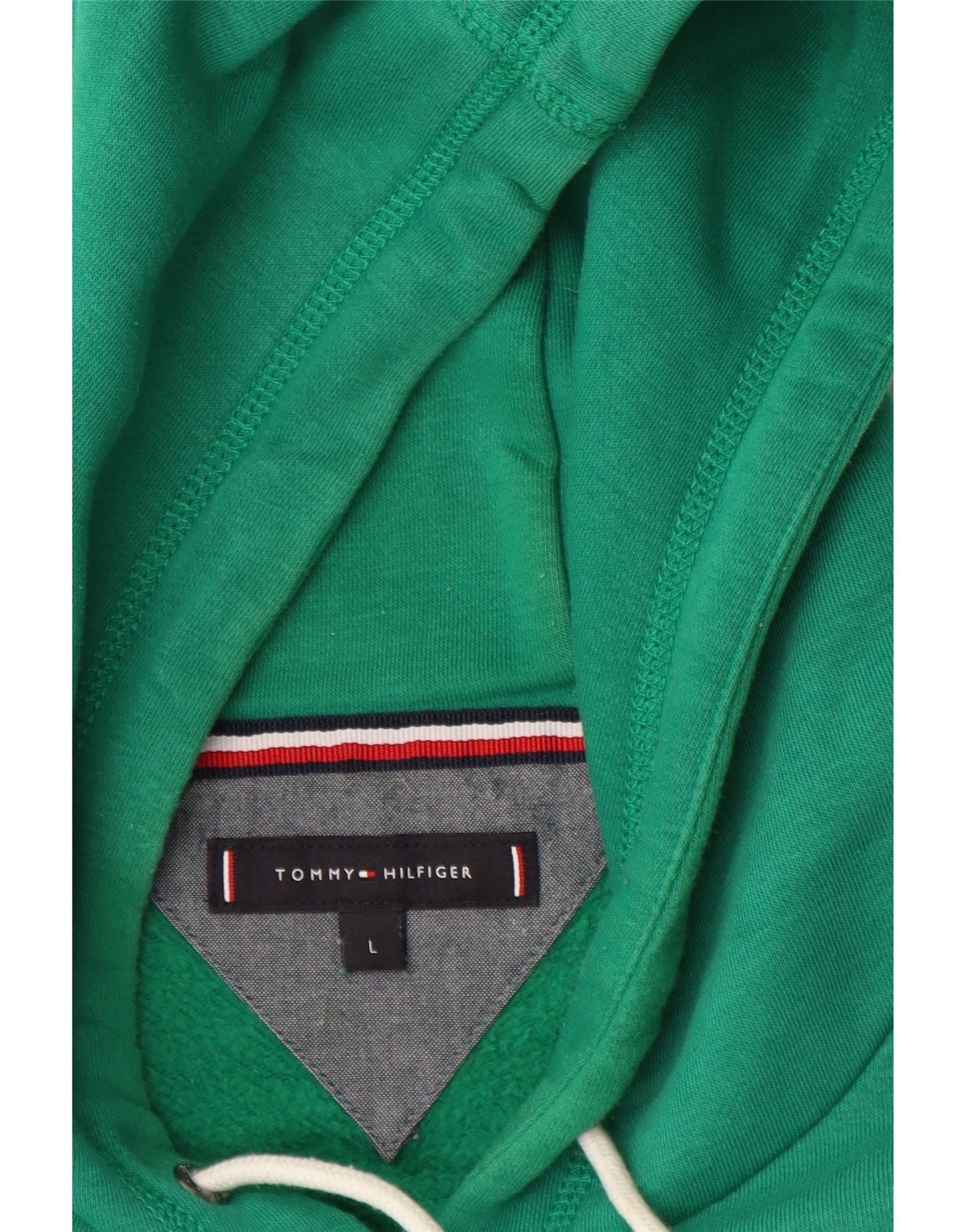 TOMMY HILFIGER Mens Graphic Hoodie Jumper Large Green Cotton