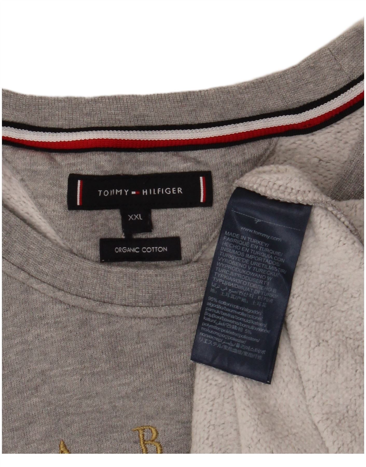 - KI-Beschreibung: Dieser Herren-Sweatshirtpullover von Tommy Hilfiger ist aus weichem, grauem Baumwolljersey gefertigt. Es verfügt über einen klassischen Rundhalsausschnitt und lange Ärmel mit bequemen Bündchen. Das Pullover-Design bietet eine normale Passform für den Alltag. Ein markanter weiß-roter Streifen auf der Brust zeigt das buchstabierte MCMLXXXV Tommy Hilfiger-Logo. Dieses Stück kombiniert Komfort mit ikonischem Branding.