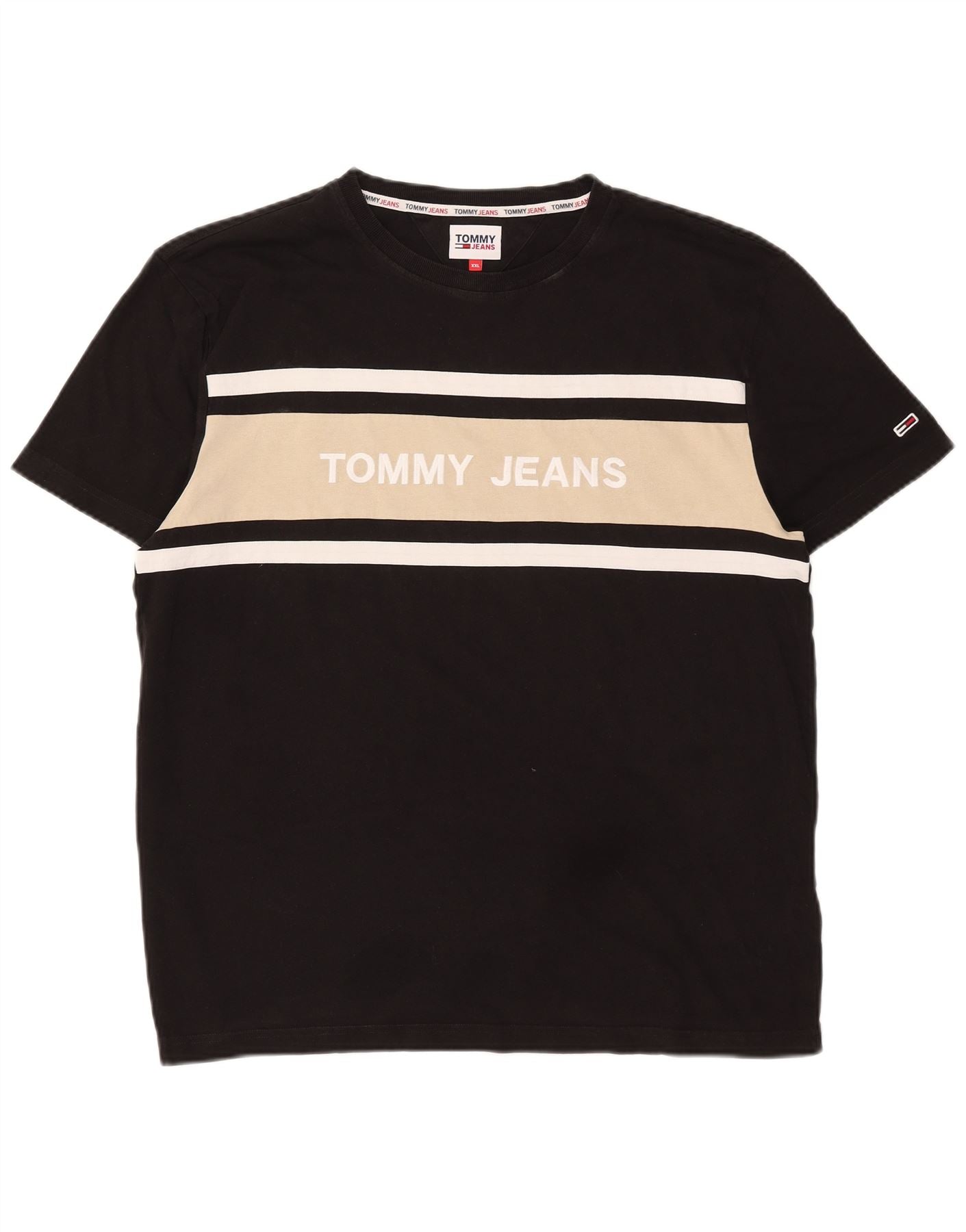 TOMMY HILFIGER Mens Graphic T-Shirt Top 2XL Black Colourblock Cotton