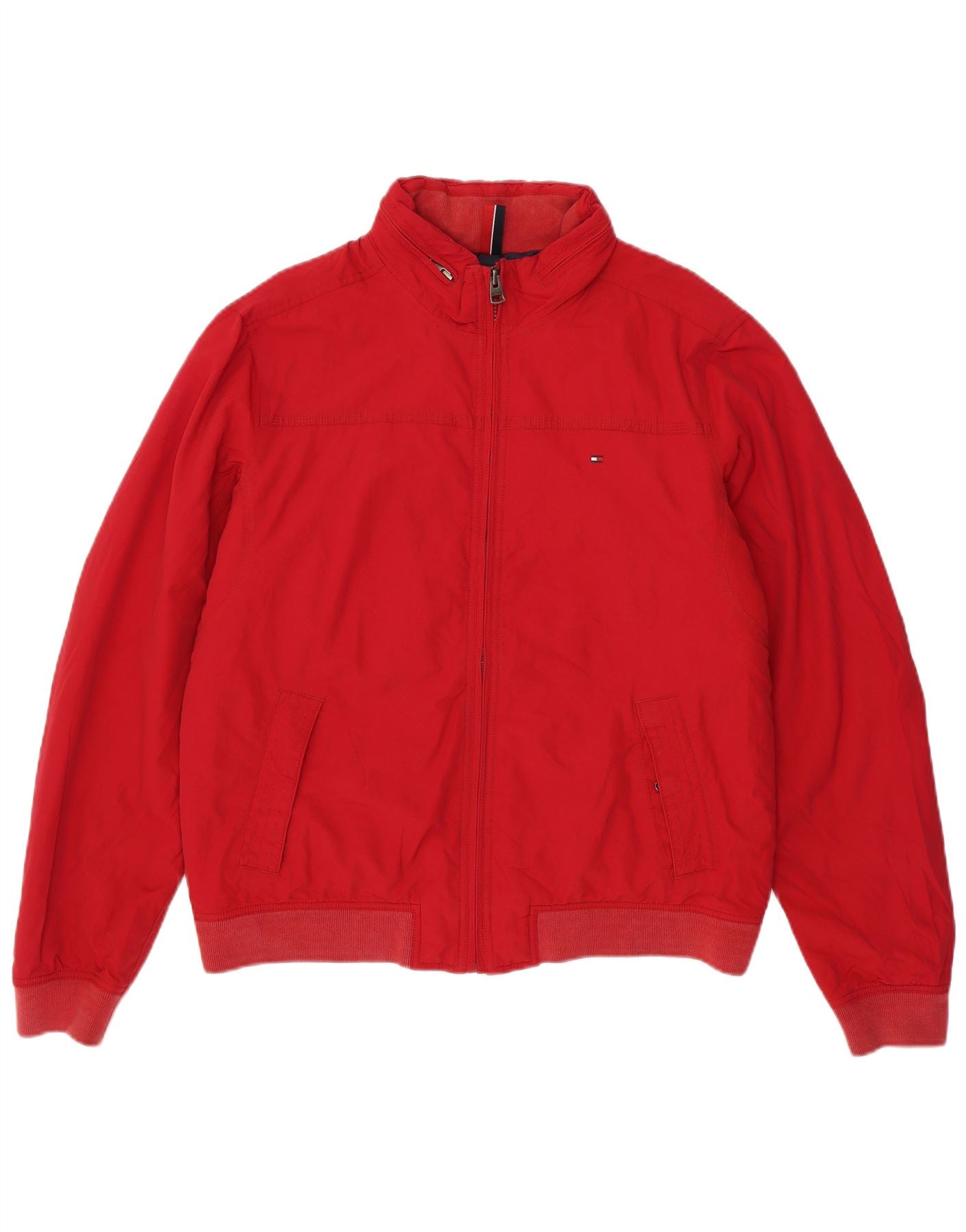 TOMMY HILFIGER Herren-Bomberjacke mit Kapuze, UK 42 XL, rotes Nylon