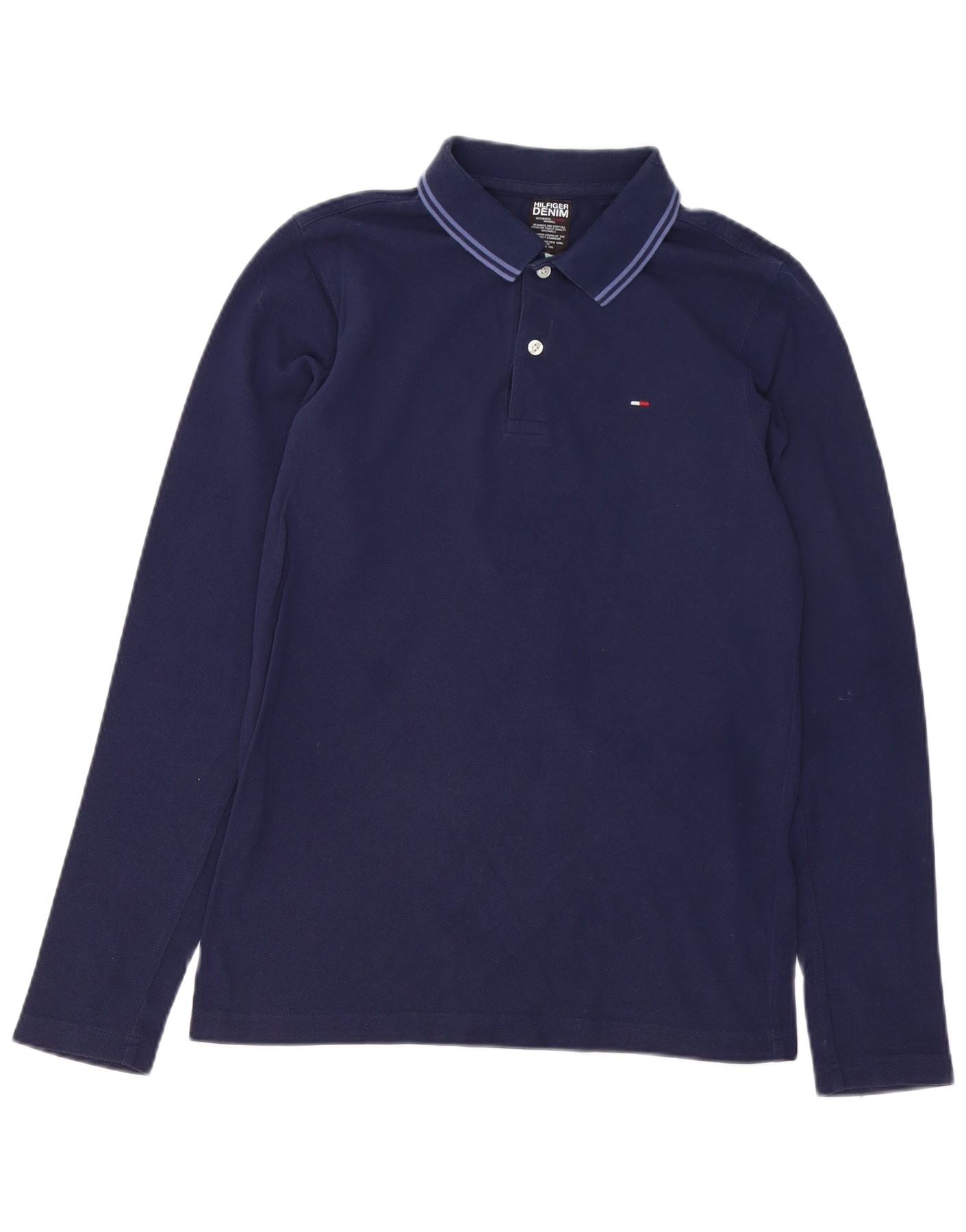 TOMMY HILFIGER Herren-Langarm-Poloshirt, mittelmarineblaue Baumwolle