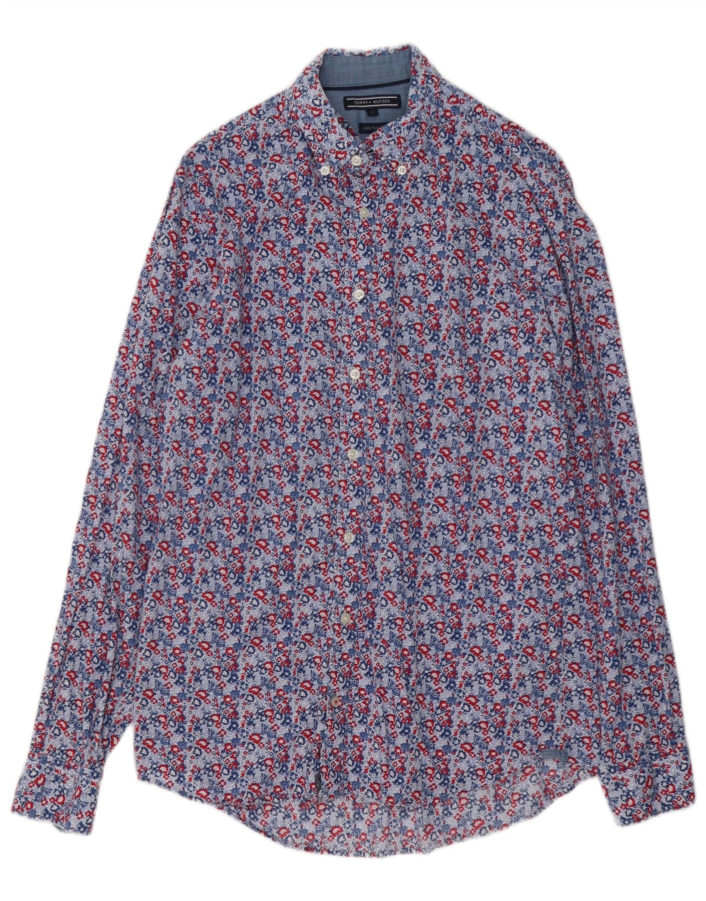 TOMMY HILFIGER Herren New York Fit Hemd Kleines blaues Blumenmuster aus Baumwolle